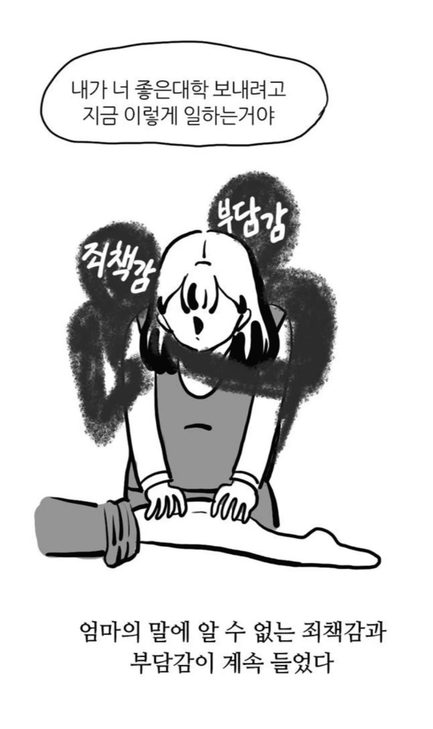 무엇보다 나를 위해 희생한다는 부모의 말은 정말 강력하다.부모의 힘겹고 나약한 모습은 계속 자식의 눈에 밟히며 무의식 중에 산처럼 쌓여있는 부채감을 꾹꾹 상기시킨다. 아이들은 부모의 폭력에 그들을 죽도록 미워하다가도, 이내 그런 스스로에게 죄책감과 혐오감을 느낀다. 부모를 향한 증오는 그대로 죄책감으로 돌아와 자신의 숨을 옥죄는 것이다. 그래서 오갈 곳 없는 분노를 품은 아이들은 스스로 가족이라는 관계를 끊어낼 능력이 없다. 자식들은 그 족쇄 같은 관계를 유지해도 상처받지만, 끊어내도 상처받기 때문이다.
