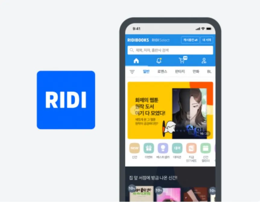 : 2020년 9월, 리디북스 모바일 앱에 웹툰과 웹소설 메뉴를 전면에 내세우는 방식으로 앱을 개편했는데요. 기존에도 웹툰과 웹소설을 서비스하고는 있었지만, 이는 전자책이 아닌 웹툰과 웹소설을 주요 콘텐츠로 내세우겠다며 출사표를 던진 기념비적인 개편이라 볼 수 있습니다.