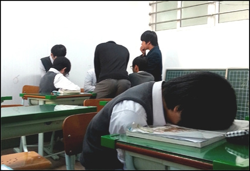 "소수의 아이들은 열심히 공부하고, 다수는 억지로 공부하거나 타인의 공부를 방해하며, 나머지 아이들은 잠을 잔다."
