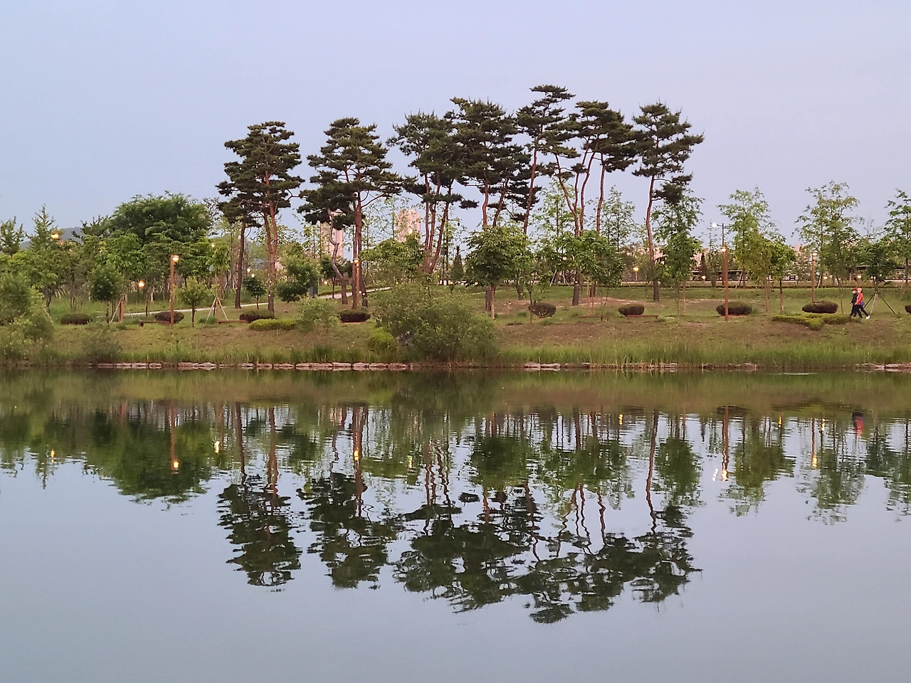 호수면이 잔잔하니 풍경이 그대로 비친다.