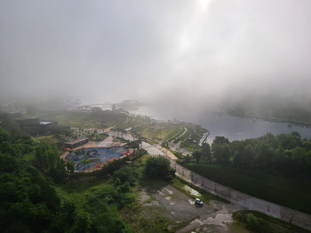 아침에 일어나니 호숫가에 물안개가 자욱하다. 주말이구나.