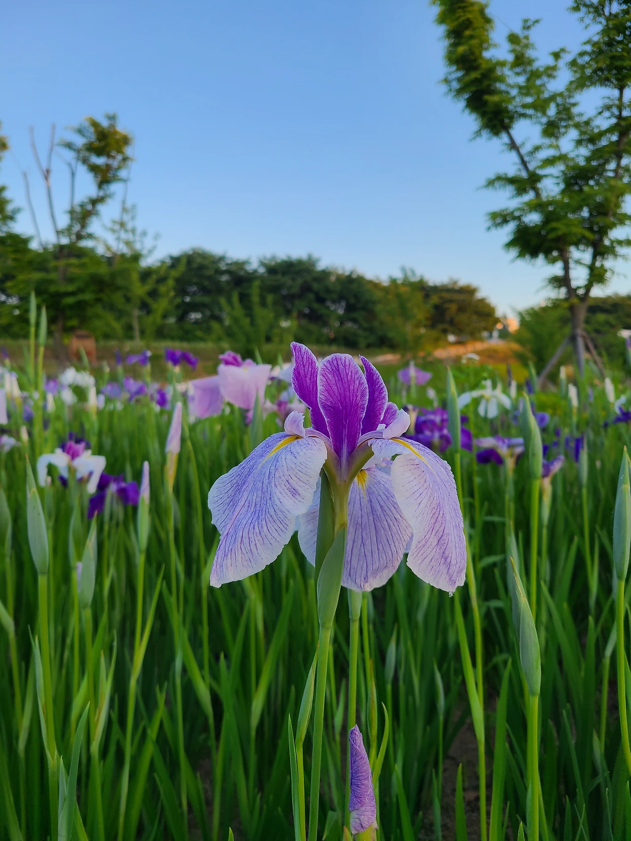 서울에 올라와 주말 산책 중이다. 일주일 중 그나마 여유로운 몇 시간이다. 천변을 걷다가 발견한 왕꽃창포. 무리지어 예쁘게도 피었다.
