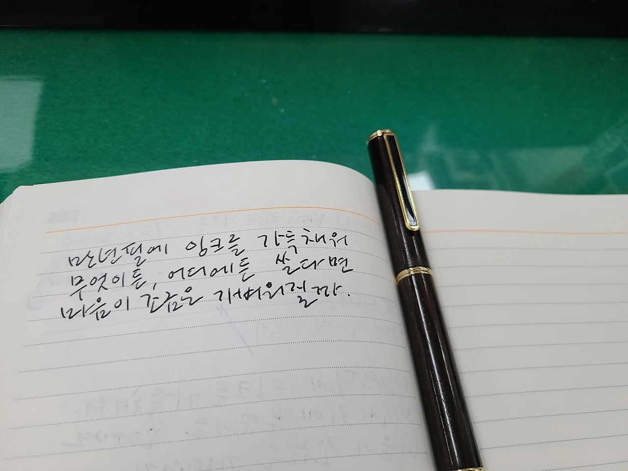 존경하는 출판사 편집장께서 작년에 생일 선물로 주신 만년필이다. 오랜만에 꺼냈더니 잉크가 다 말랐다. 만년필로 글씨를 써보고 싶은 욕구가 갑자기 밀고 올라왔다.