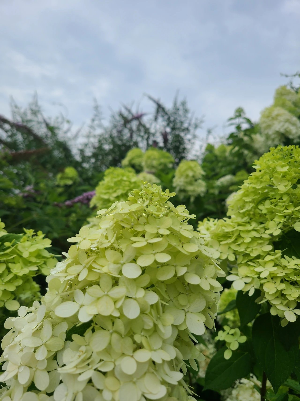 비는 간간히 내리는데 우산을 들고 산책 나왔다. 강가에 핀, 아직은 연두빛이 섞인 목수국이 탐스럽다.