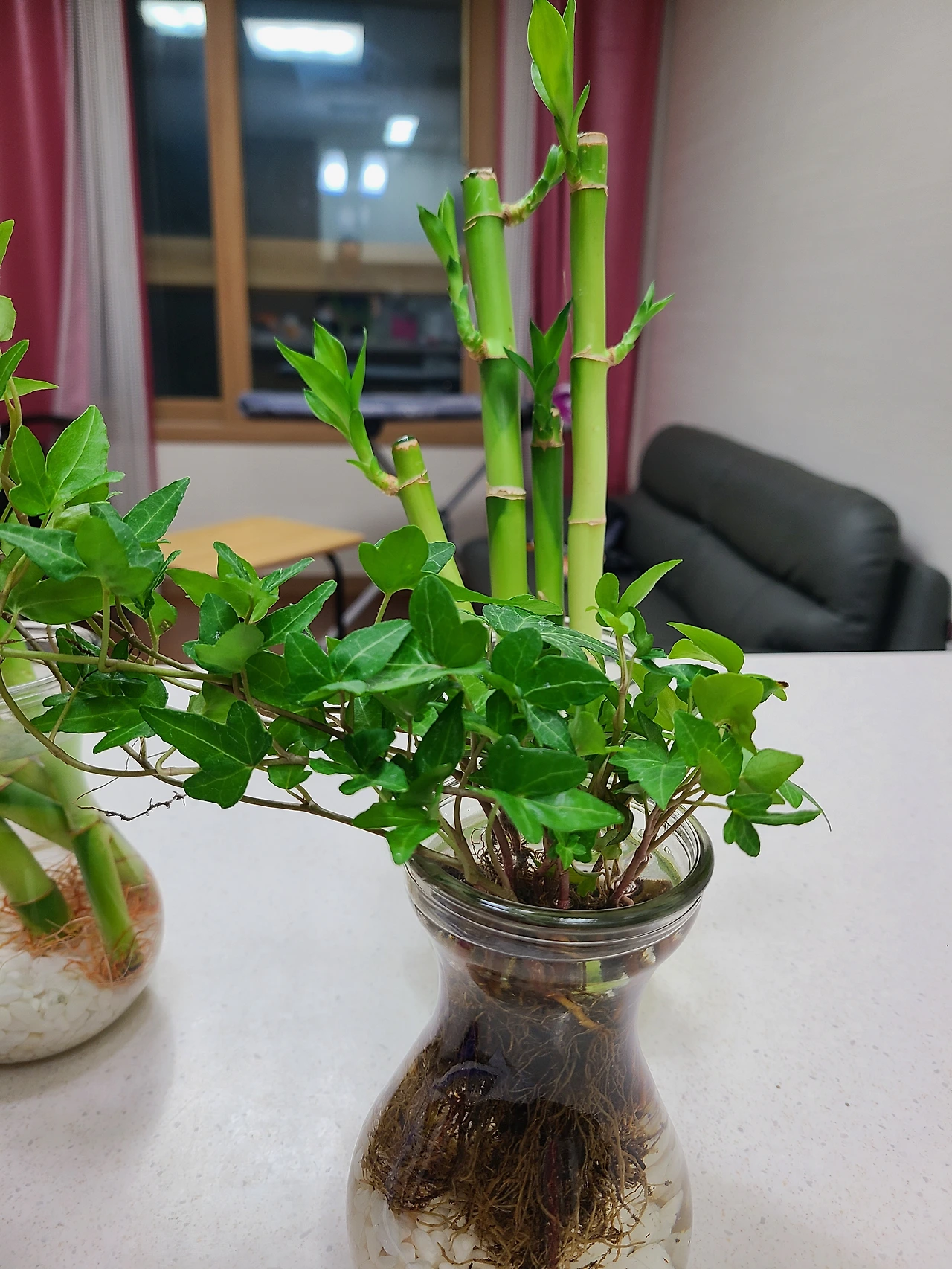 혼자 사는 데다 집을 비우는 시간이 많아 반려동물 키우기는 엄두가 안나고 식물을 키운다. 지나간 내 생일날 모교수님께서 선물해주신 트리안은 3일 집을 비운 사이 말라 죽었다. 그날 아이비와 개운죽을 주문해서 2개월 되도록 탈없이 키우고 있다. 사람이나 식물이나 제대로 살려면 통풍이 필요하다. 통=communication.