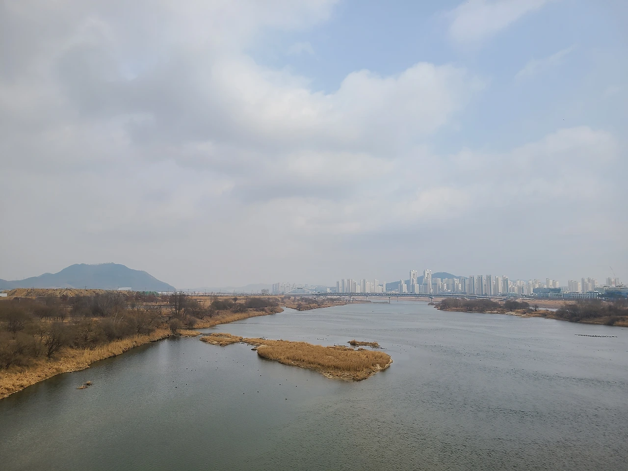 2만 보를 걷는 동안 봄기운을 느꼈다. 바람은 여전했지만 위세가 꺾여 부드러워지고 대지는 긴장을 놓아 새싹을 틔울 준비를 하고 있었다. 멀리 보이는 풍경에도 봄기운이 넘실댄다.