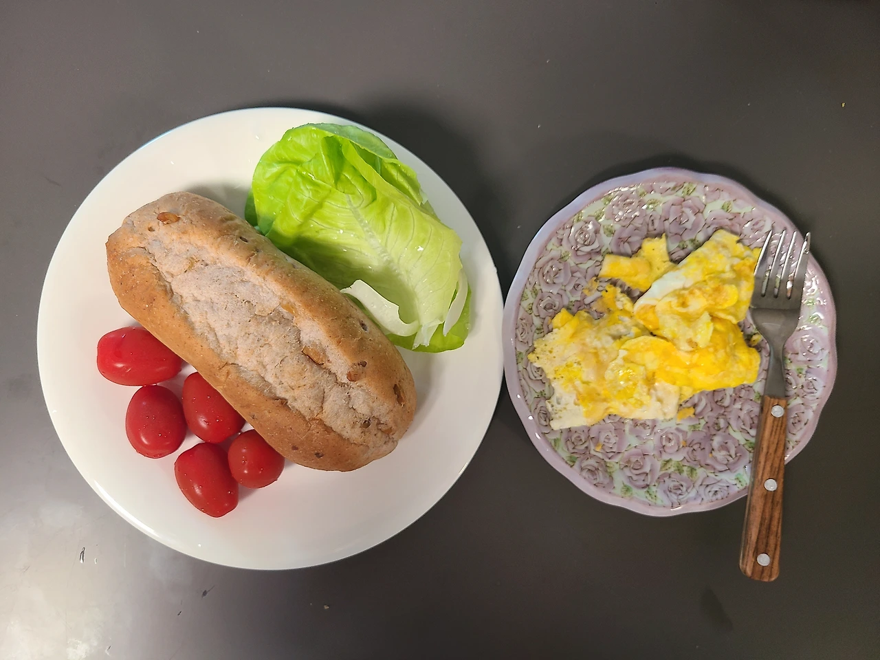 아침을 거르지 않고 먹으려 한다. 한눈에 보아도 부실한 조합이다. 얼마간의 단백질, 탄수화물, 비타민과 섬유질을 공급하는 과채류