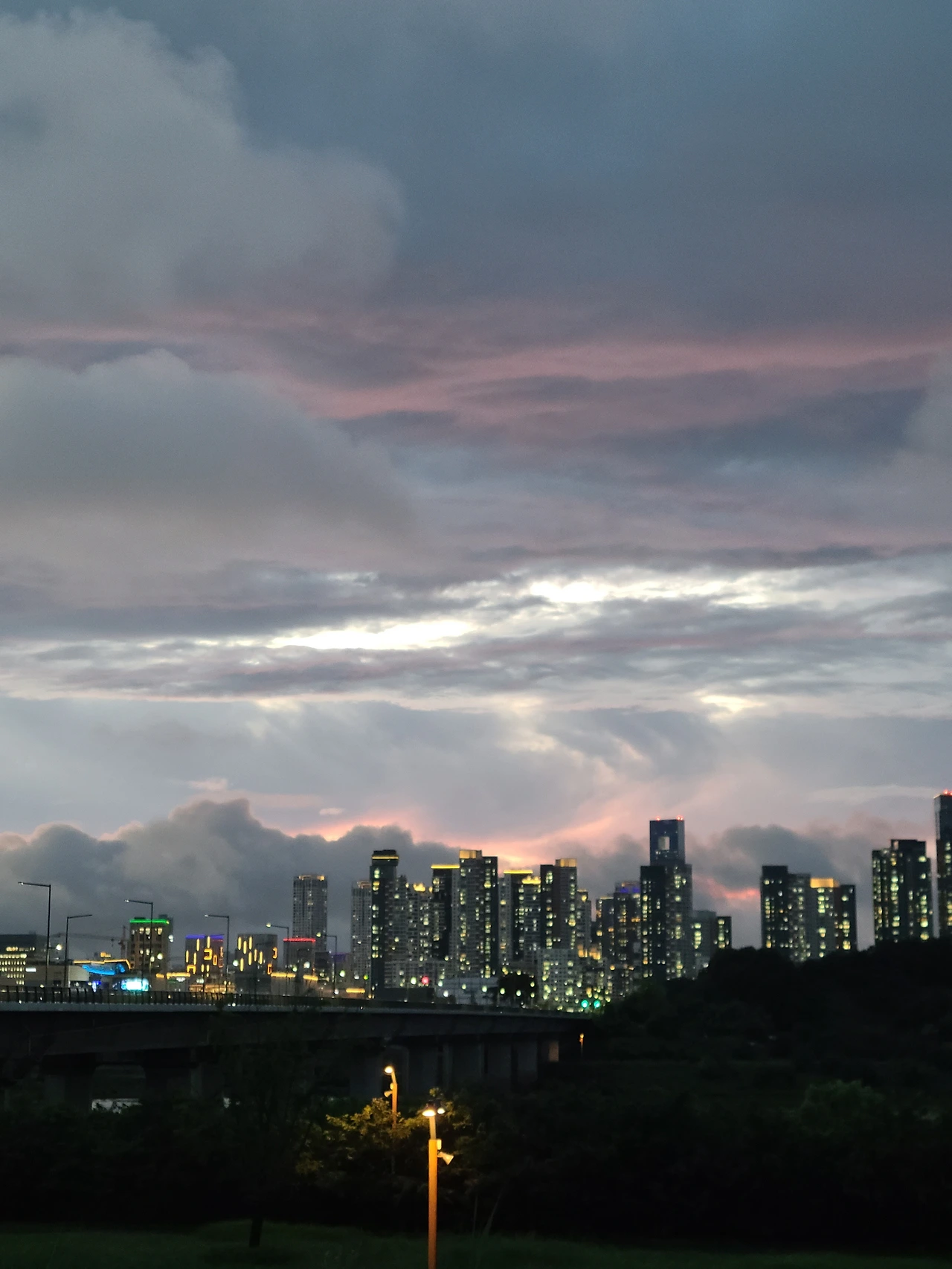 제목을 '도시의 밤에 비는 내리고'라고 하더라도 의미의 차이는 없다. 공간이 도시였고, 시간은 밤이었으며 상황은 비가 내리고 있다는 것이니까. 걷기를 건너뛸 수가 없어 비 맞을 각오를 하고 강변으로 나갔다. 돌아오는 지점까지 한두 방울 내리는 가벼운 비였으나 막판엔 제법 큰 빗줄기를 맞았다. 오랜만에 우산 없이 비를 맞는 기분이 나쁘지 않았다. 더 차분해지고 사색은 깊어졌다고나 할까.