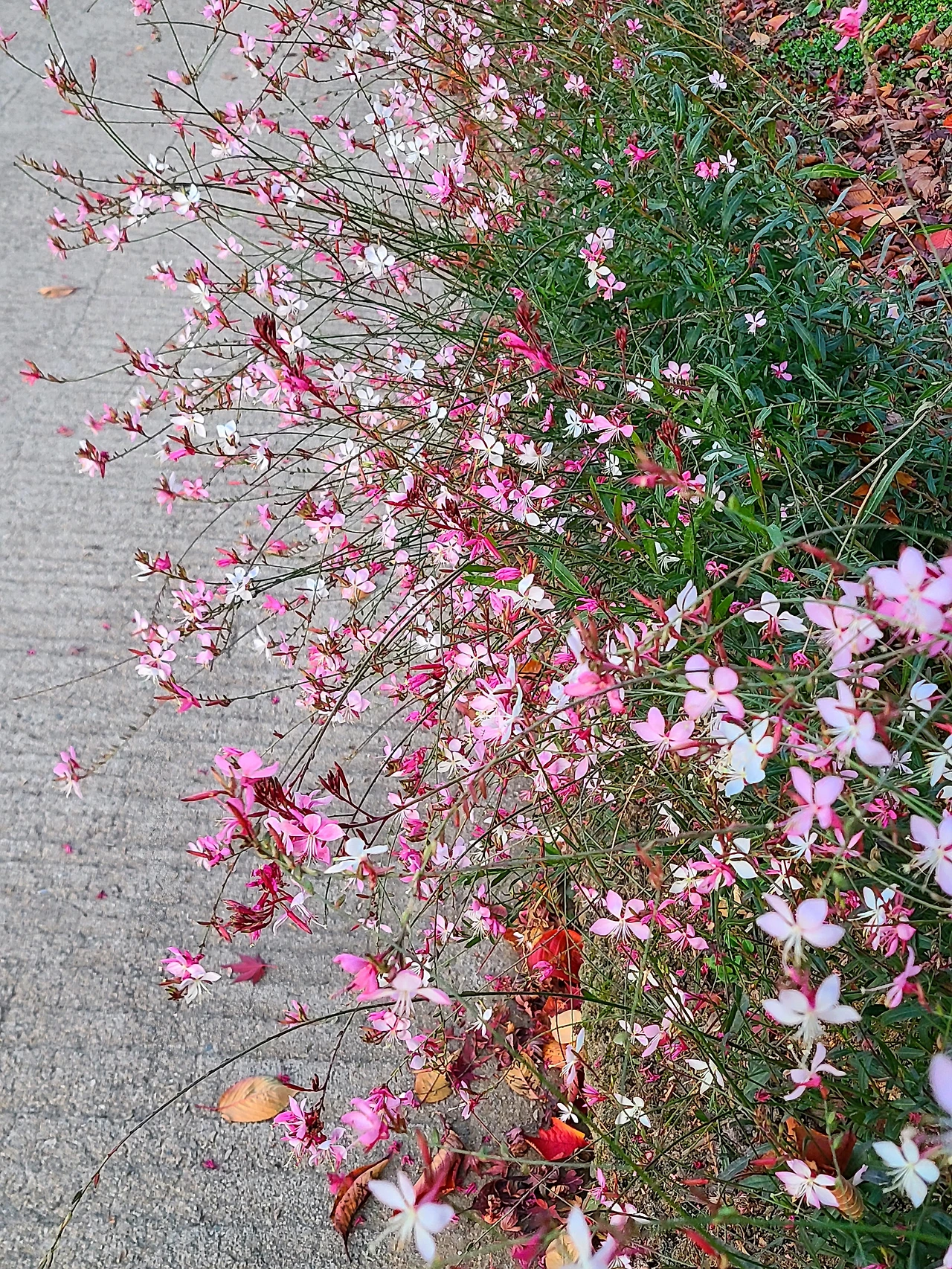 가우라 혹은 홍접초라고도 불리는 나비바늘꽃이다. 가을밤 산책길에 자주 만난다. 꽃태가 산만하고 수수하다. 그림자까지 어우러져 한 폭의 그림이다. 장미처럼 한송이로 자태를 뽐내는 꽃도 있지만 나비바늘꽃은 무리지어 아름다움을 드러낸다. 평생 노는 법을 모르고 겨우 산책만 하는 내겐 이놈이 친구다.