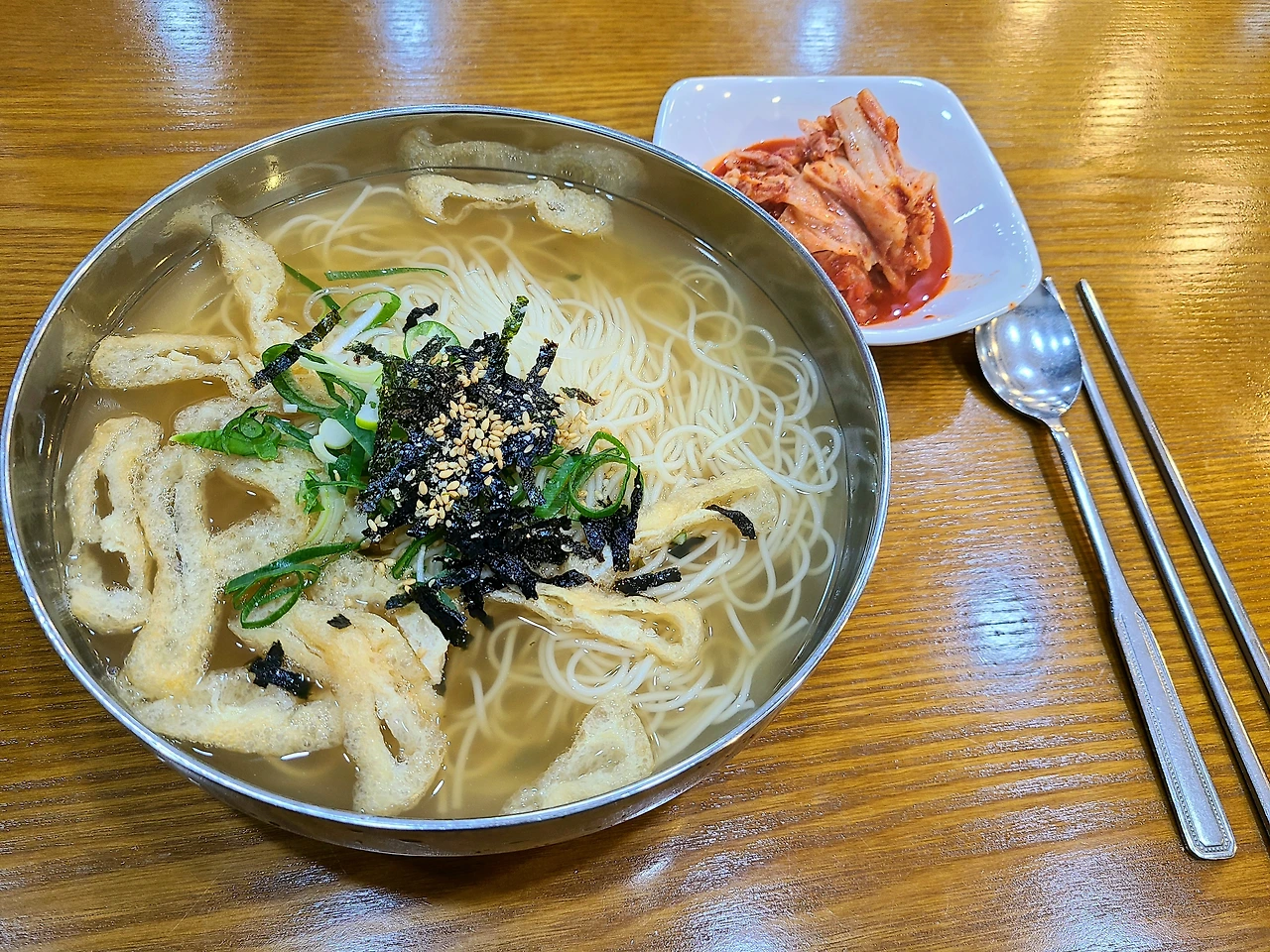 여기 들어와서 국수를 먹는 분위기를 깨고 싶지 않아 무심하게 그냥 국수만 먹는다. 유부를 조금 더 넣는 것 빼고 이곳 국수가 특별한 재료를 쓰는 것 같진 않다. 그럼에도 국물과 면, 그리고 몇 가지 부재료가 합해져 최고의 맛이 난다. '맛'이란 것이 같은 재료에서 다른 맛이 나오게 하는 것이라면, 이 집에서 국수를 삶는 일에 경외심을 표하고 싶을 정도다.