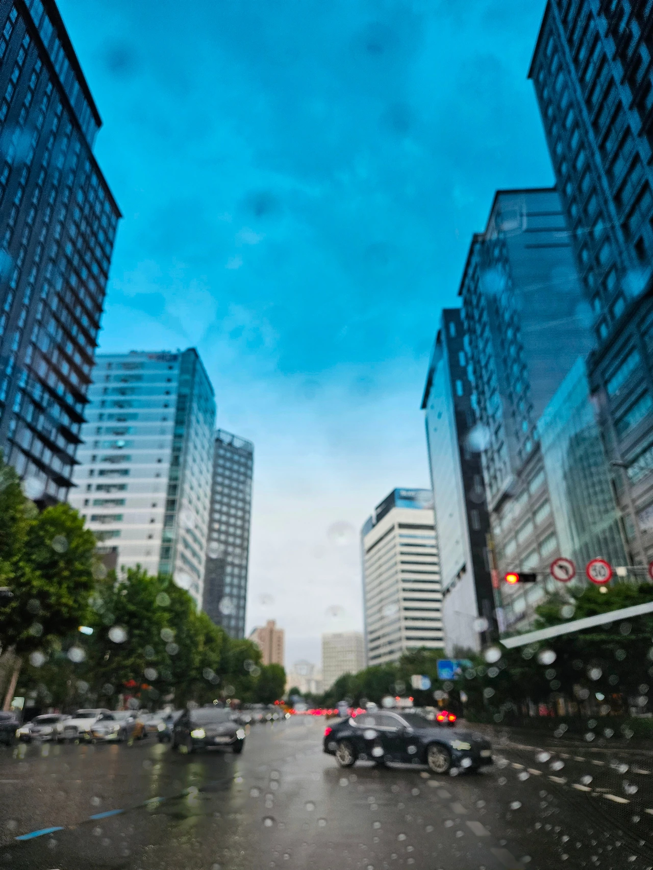 아침 출근길에 신호등이 내 앞에서 정지 신호로 바뀌면, 앞에 펼쳐지는 풍경을 주목한다. 비가 내리는 아침이었다. 정지선에 서서 출발 신호를 기다리는 중이었다. 창닦이는 간헐적으로 움직이고 그때마다 풍경이 바뀐다. 엄격하게 말하면 풍경은 그대로인데 내 눈에 보이는 방식이 다르다. 사진을 찍으면 그 차이가 두드러진다.