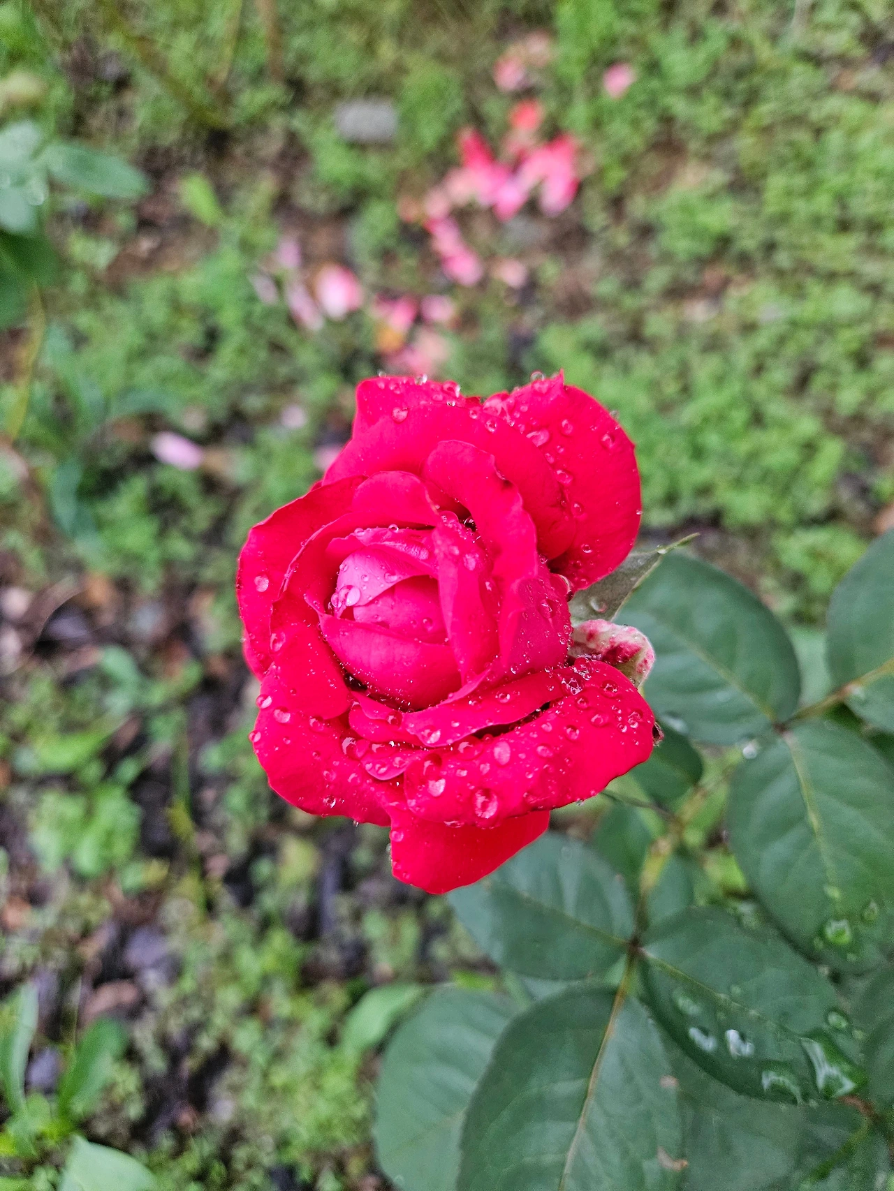 본래 장미는 유월에 집중적으로 핀다. 조금 늦게 핀다 해도 칠월쯤. 그런데 한 차례 장미의 향연이 지난 구월에 그것도 하순으로 접어드는 길목에서 다시 피었다. 품종 개량이 빈번하다 보니 계절을 가리지 않고 피는 듯하다. 가을 비는 조용하게 내리고 장미 꽃잎은 빗물을 머금었다.