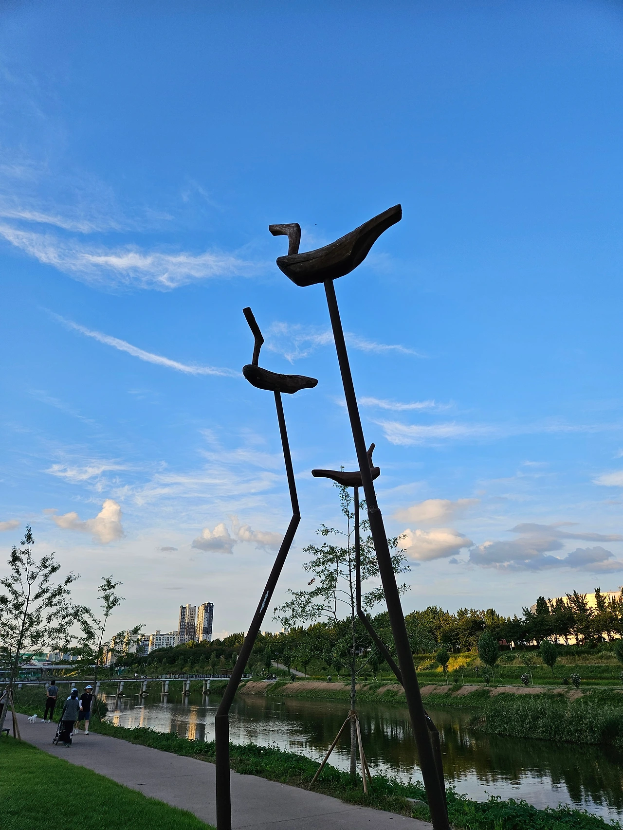 주말 오전은 강남에서 공무로 보냈고, 점심 먹고 돌아와 오랜만에 짧은 낮잠도 잤다. 그림자가 길어지는 시간에 강변으로 나왔다. 며칠 사이 가을 느낌이 물씬 난다. 하늘과 공기와 대지가 옷을 갈아입을 차비를 하는 듯하다. 거짓말처럼 계절이 바뀌고 있구나.