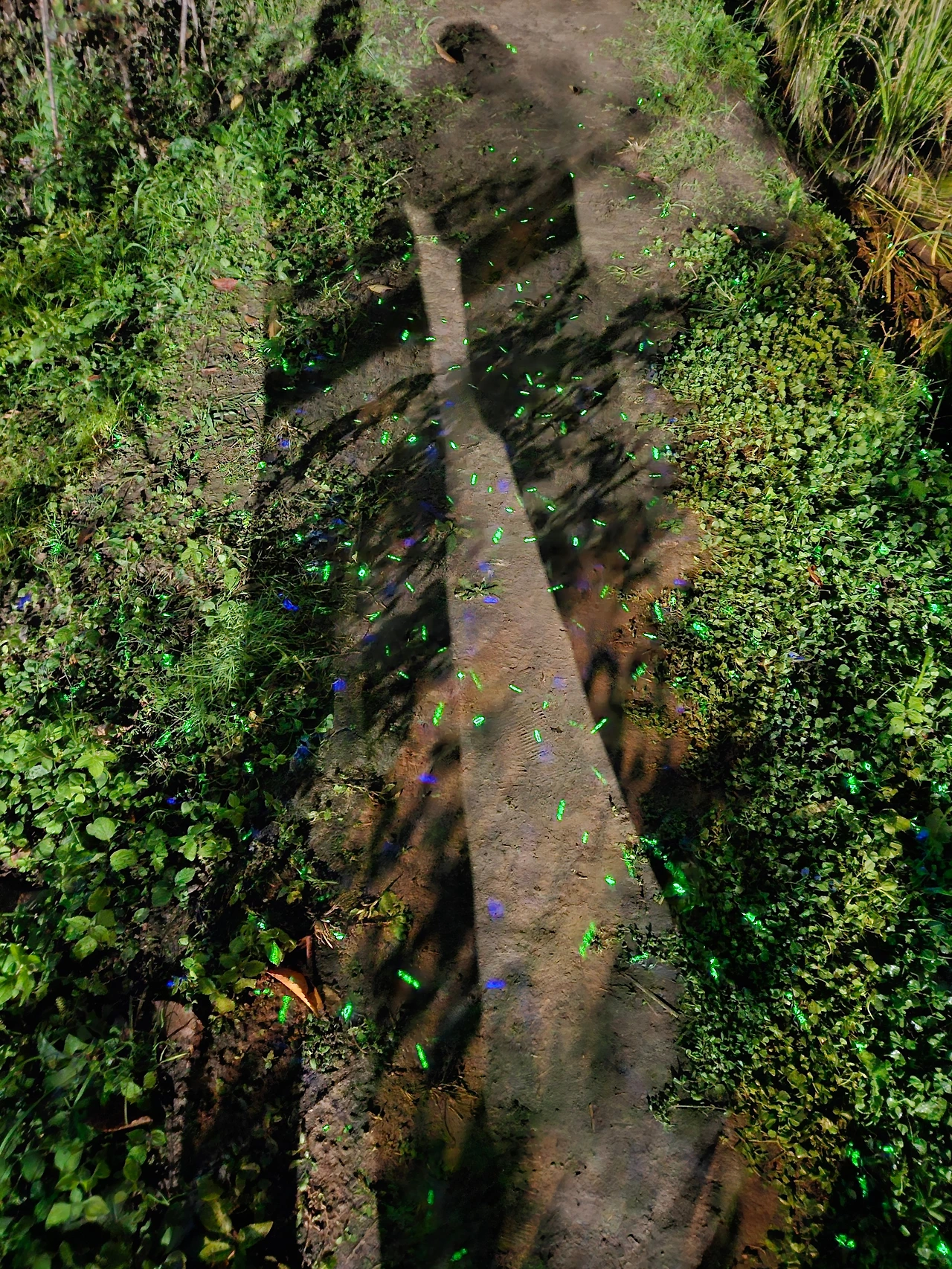 동네 축제는 끝났지만 설치했던 각양각색의 조명은 철거하지 않고 당분간 유지하는 모양이다. LCD로 비추는 반딧불 모양의 움직이는 조명 아래 섰다.