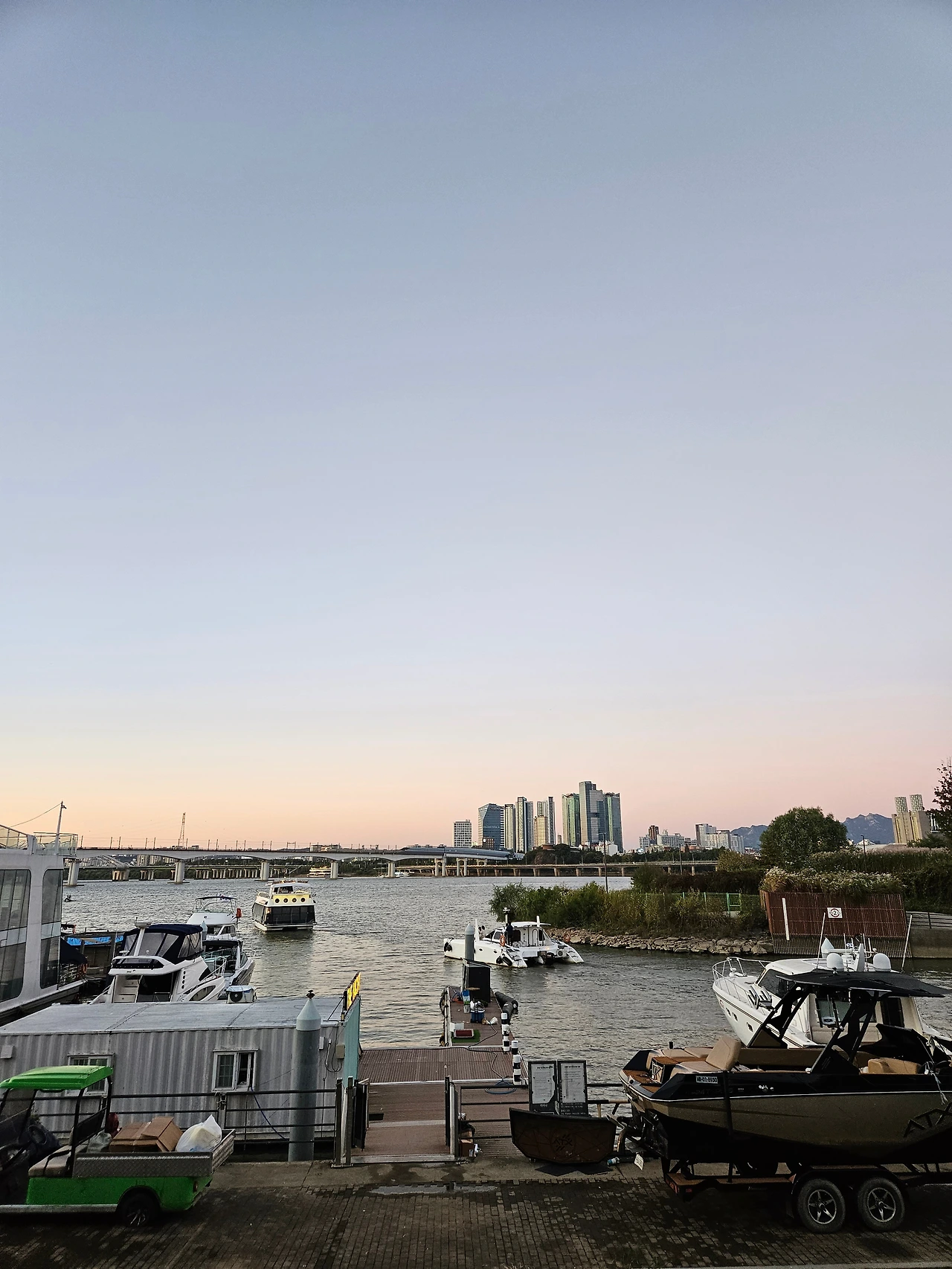 샛강에서 시작하여 반대편 마포대교 아래에 이르니 물빛 축제가 한창이다. 긴 의자에 자리를 잡고 뜨거운 물에 봉지 커피를 타서 홀짝거린다. 카페인을 머금은 온기가 혈관을 타고 온몸으로 흐른다. 두 시간 남짓 걸려 다시 샛강으로 돌아왔다. 기분 좋은 피로감을 안고 집으로.