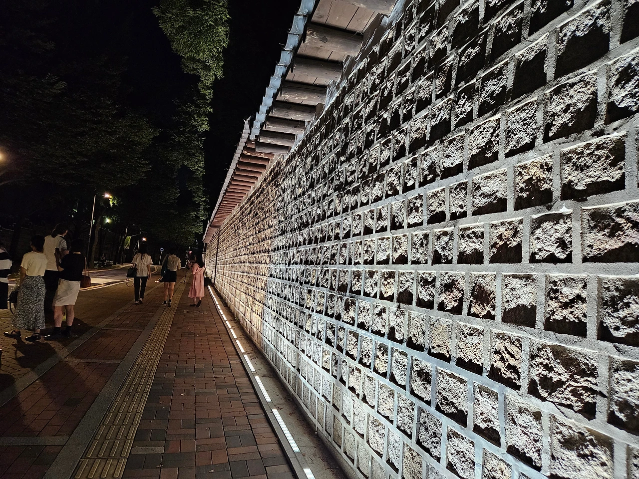 위에서 아래로 안도 타다오가 설계한 뮤지엄산의 돌담, 지난 주말 창경궁의 담, 밤을 걷는 덕수궁 돌담