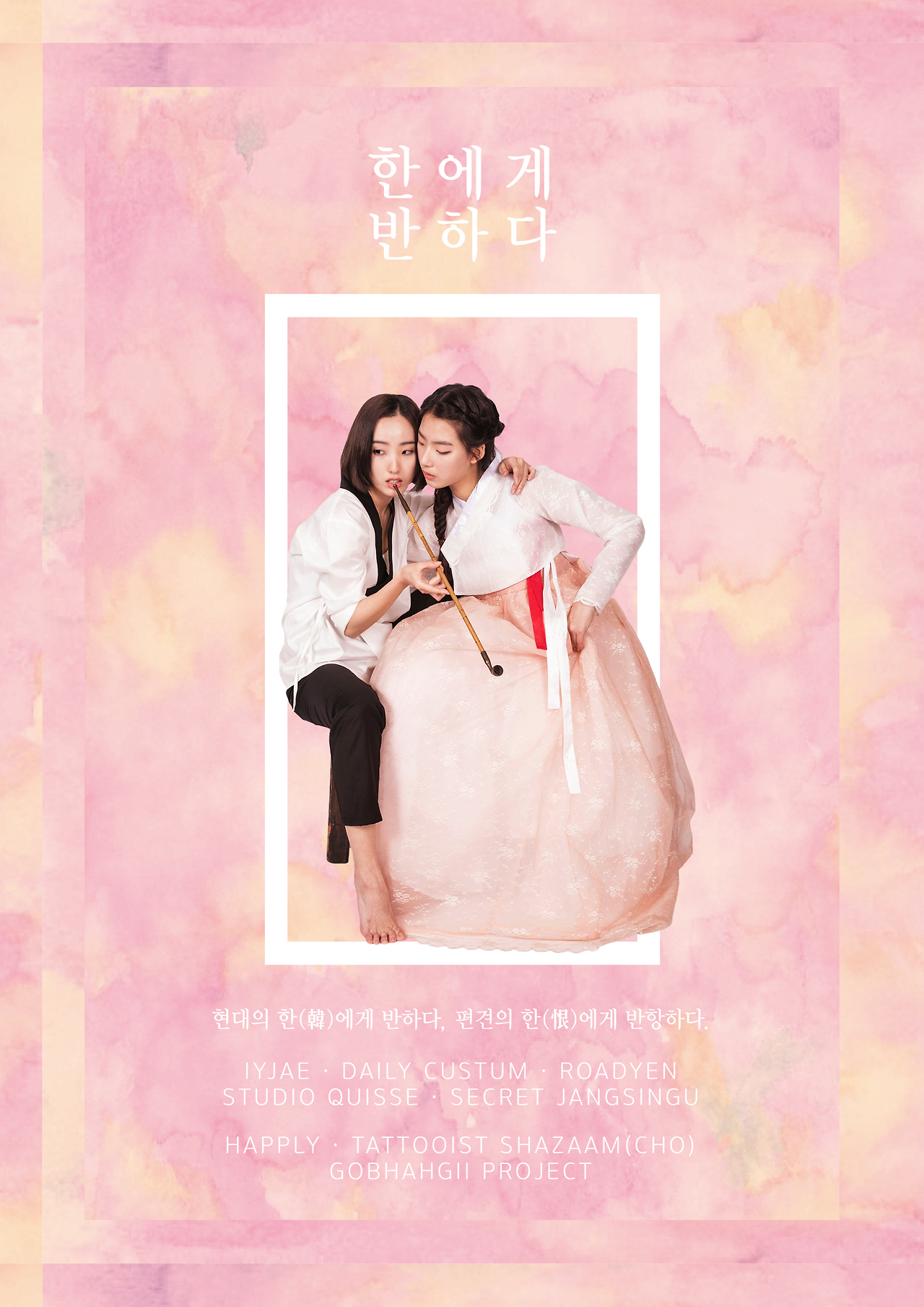 한복과 타투. 그리고 성소수자. 이 키워드를 활용하여, 이들이 존중을 해줄 요구나 존중을 받을 자격을 찾는 것이 아닌, 말 그대로의 진심어린 이야기를 청춘들에게 제시하기 위해서. 편견 속에서 상처받고 있는 이들의 이야기를 조금이라도 듣기를 바라는 마음을 담아, 이 요소들을 활용할 패션화보를 찍어 청춘들에게 제시하려 한다. 화보 안의 두 여인과 입은 옷들, 화보 속에 있는 그림과 색깔, 메세지를 보고 조금은 편견을 가진 이들이 행동을 되돌이켜 볼 수 있기를.