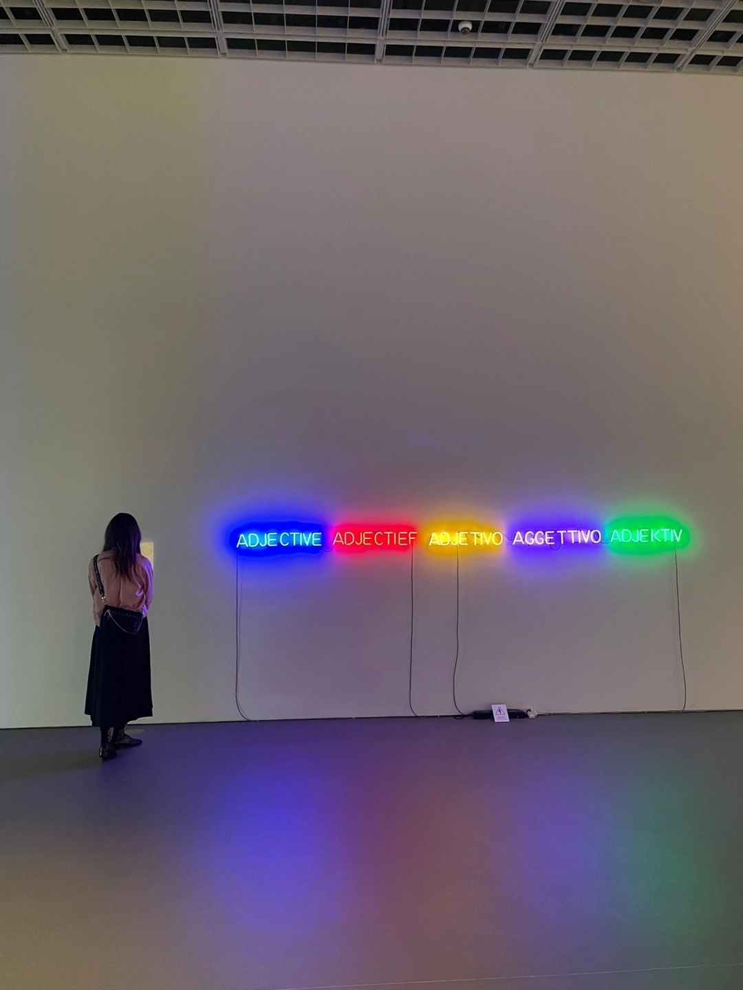 작가는 시각적 아름다움은 개념적으로 예술과 무관하다고 주장하며 예술의 본질을 탐구하는 과정에서 언어적 접근을 사용한다. 제목 그대로 '형용사'라는 단어를 각기 다른 다섯 개의 언어, 다섯 가지의 색깔로 나타냈다. 작가는 언어와 언어를 보여주는 방식을 통해 작품의 미적 형태가 아닌 의미와 개념에 집중하였다.