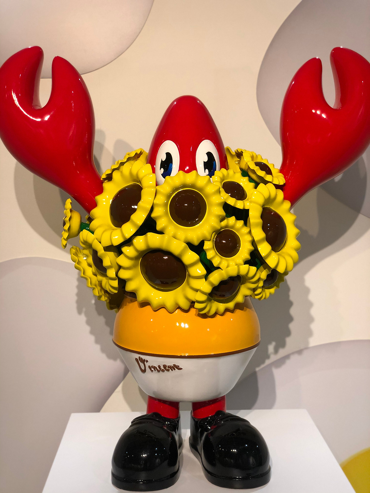 전시 앞부분에 있던 랍스터가 왜 해바라기를 입고 있나 하는 의문이 풀리는 작품이다. 자세히 보니 랍스터에 빈센트라고 쓰여있다.