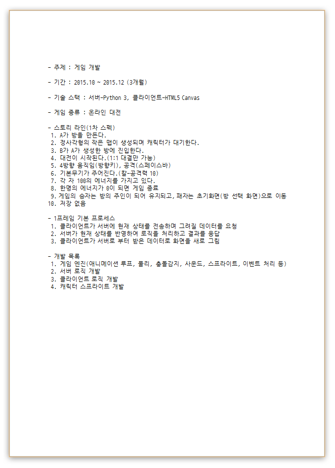 한 페이지 분량의 문서이지만 이것으로 대부분의 요구사항이 도출되었고, 무엇을 어떻게 개발해야 하는지 머릿속에 어느 정도 감이 잡히기 시작했습니다.