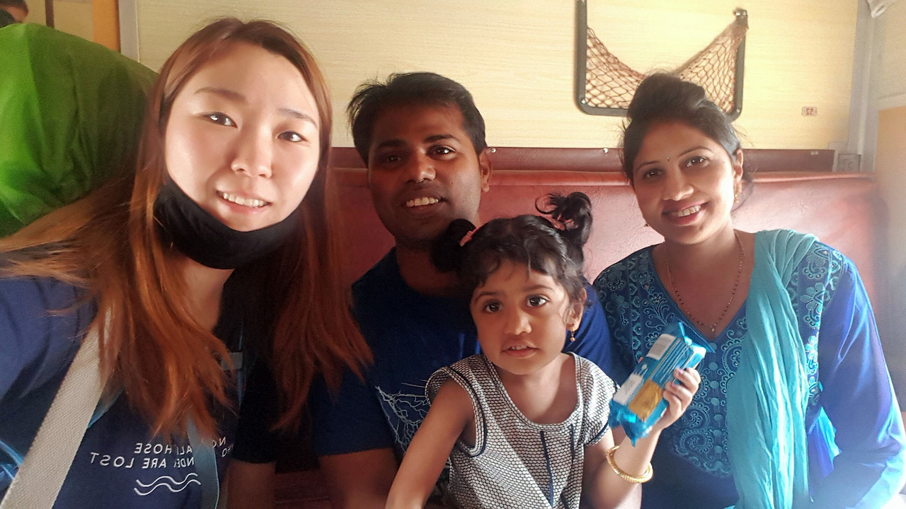 그 소리에 잠을 깨우고 일어나 얼굴을 비비며 자리에 앉았다. 자고 일어나 보니, 옆자리에 인도 여자와 그녀의 딸인 꼬마 아이가 앉아 있었다.