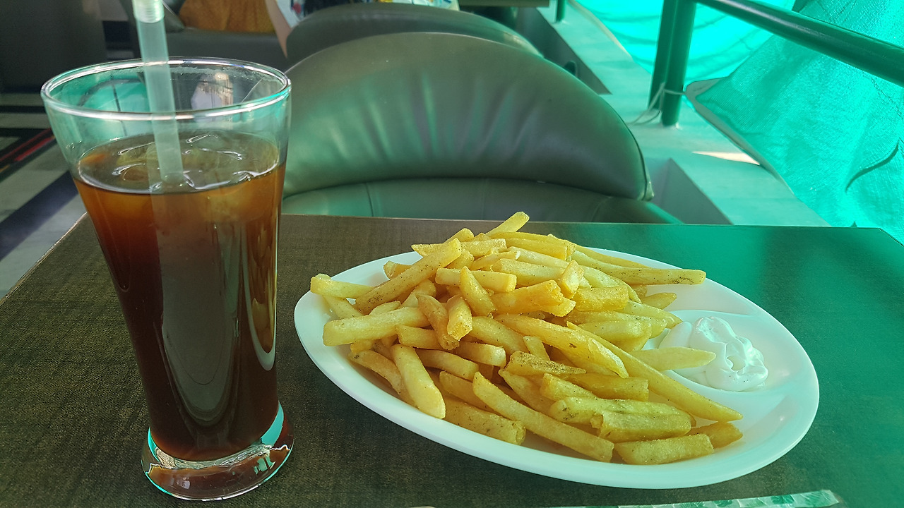 한국인에게 유명한 카페를 찾아 들어갔다. 호수가 한눈에 보이는 세련된 루프탑 카페였다. 아이스 아메리카노 한잔과 감자튀김을 시켰다. (워낙 카페가 깨끗해 보였기 때문에, 얼음을 먹어도 괜찮을 것 같단 생각을 했다. 원래 인도에선 얼음을 절대 먹으면 안 된다.ㅠㅠ)