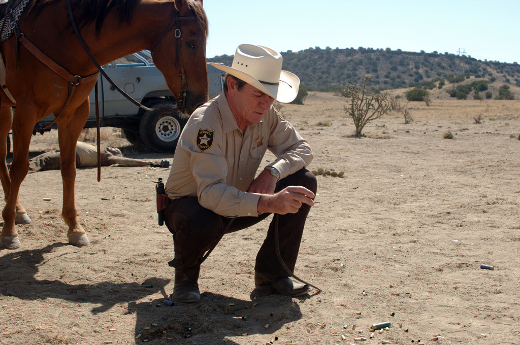 이 영화에서 배테랑 경찰 에드 톰 벨(토미 리 존스)는 자주 등장합니다
