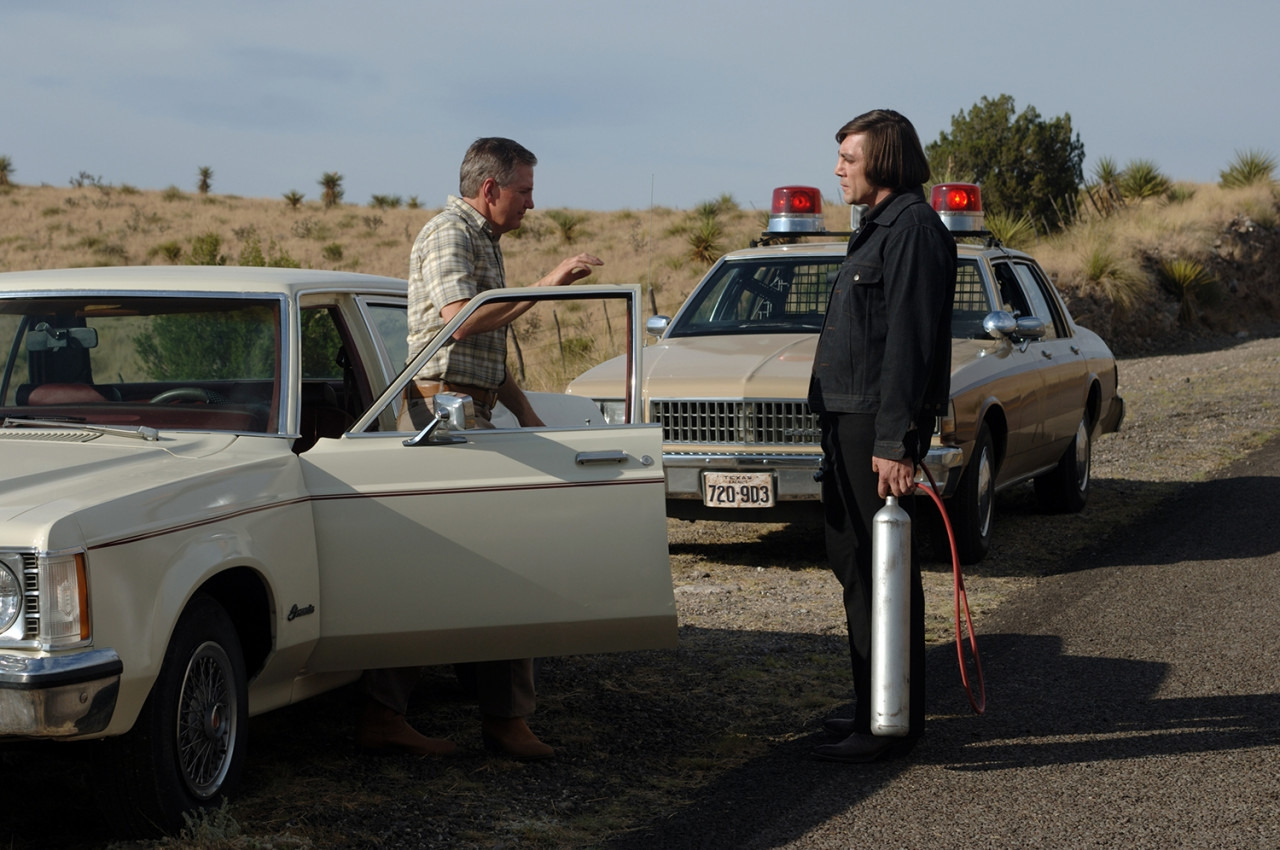 이 영화의 오프닝은 톰 벨의 목소리가 깔리며, 여명으로 밝아지는 광활한 초원을 비추며 시작합니다. 그리고 보이스 오버로 나오는 이야기는 할아버지부터 아버지, 그리고 자신까지 이어진 보완관의 삶에 대해 이야기합니다. 그러고는 14살짜리 소녀를 죽인 소년 사형수이야기를 합니다. 톰이 잡았던 그 소년은 살인죄로 인해 전기의자로 사망했죠. 톰 벨은 왜 소녀를 죽였는지 물었지만 소년에게는 동기가 없었습니다. 당혹스럽고 이해할 수는 없었지만 톰은 크게 두렵지 않다고 하죠. 세상사 다 그런 거라고 하면서요. 그의 자신만만한 내레이션 뒤 화면이 비추는 인물은 안톤쉬거죠.