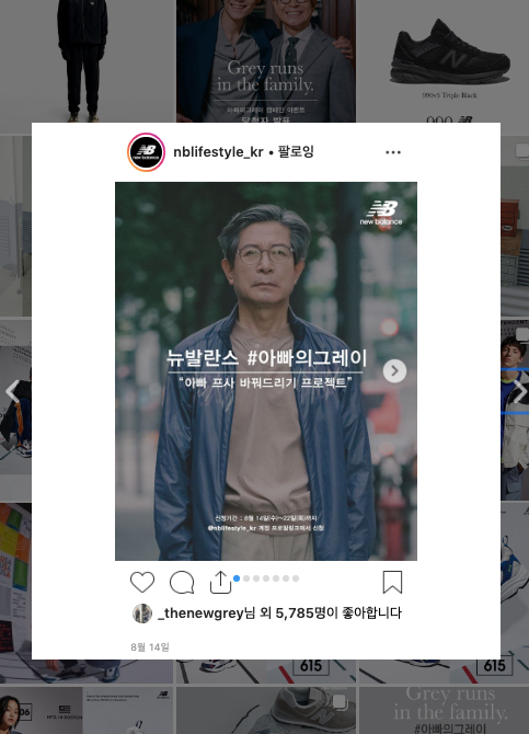 바로 뉴발란스 라이프스타일 코리아 계정 @nblifestyle_kr에서 진행하는 #아빠의그레이 이벤트예요. '아빠 프사 바꿔드리기 프로젝트'라는 컨셉의 메이크오버 이벤트죠.