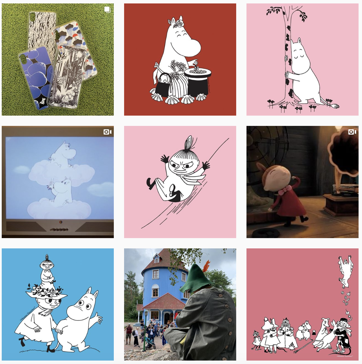 @무민의 피드. 보통 캐릭터의 인스타그램은 굿즈와 일러스트 등 이미지만을 활용하는 경우가 대부분입니다