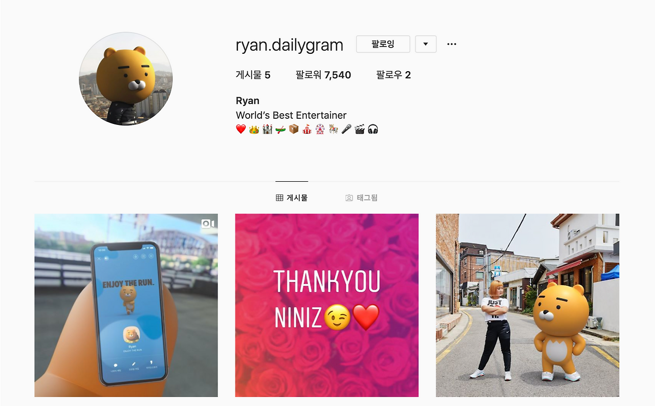 국민 캐릭터 라이언의 단독 인스타그램 계정 @ryan.dailygram이 오픈됐습니다! (귀여워!)