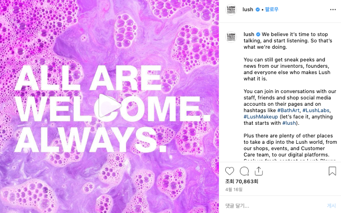 LUSH UK 인스타그램 계정의 최종최종.포스팅