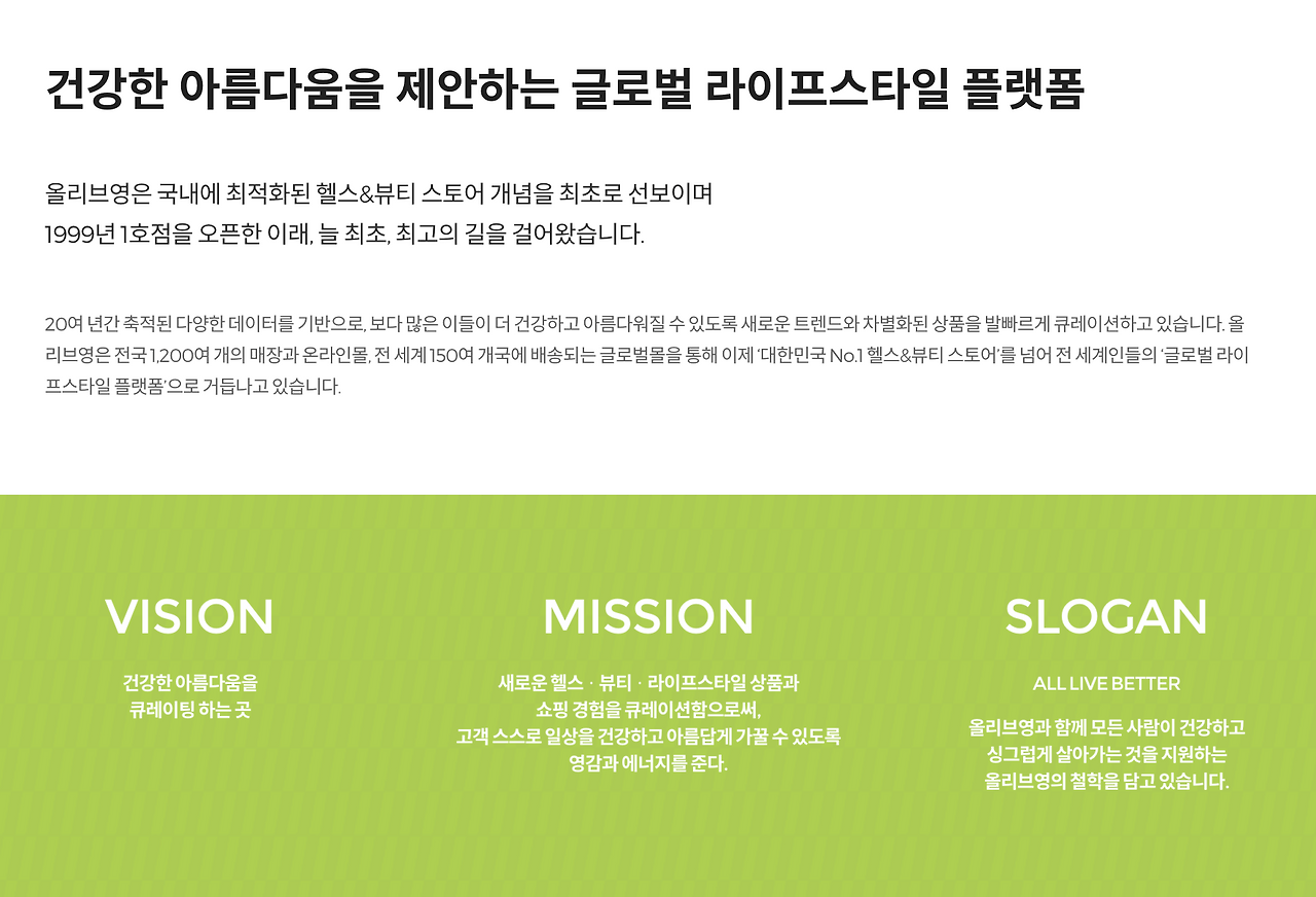 올리브영 홈페이지 중 브랜드 스토리