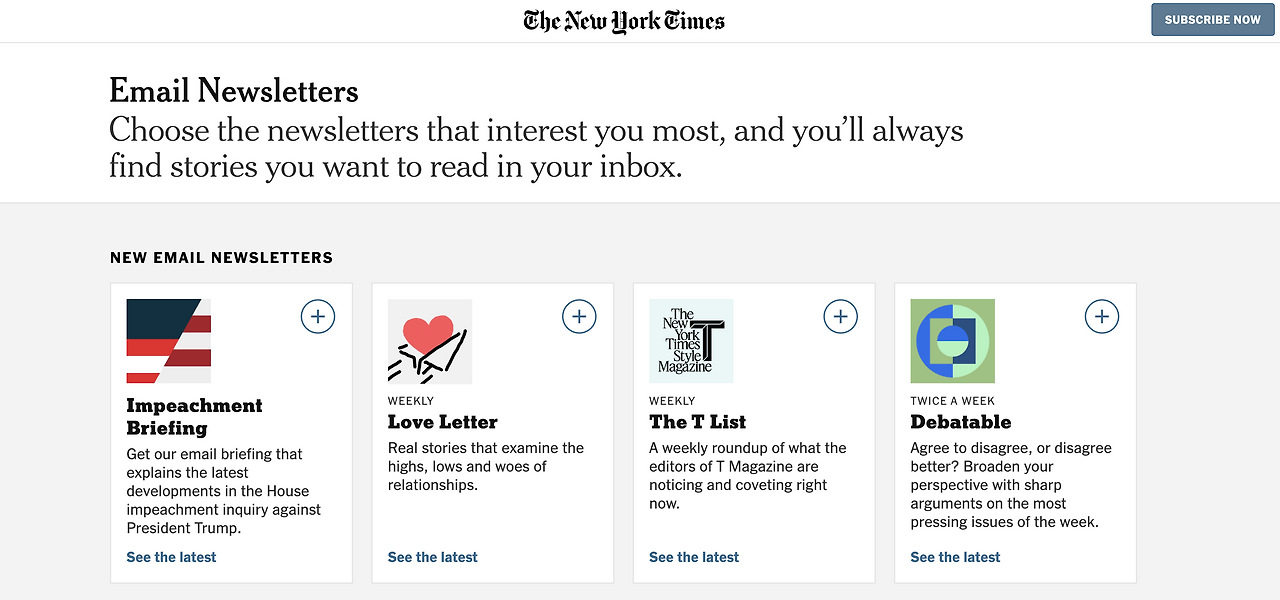 뉴욕타임즈의 경우, 무려 70여 개에 가까운 뉴스레터를 운영하고 있습니다. 최신 기사를 요약해주는 뉴스레터만 종류가 20개가 넘고, 건강 / 교육 / 여행 등 라이프 스타일별 독자들이 관심 있어할 세부 카테고리들도 있어요. 또한, 뉴욕타임즈의 기자나 에디터는 물론 각 분야의 전문가들의 인사이트까지 뉴스레터로 구독할 수 있다고 해요.