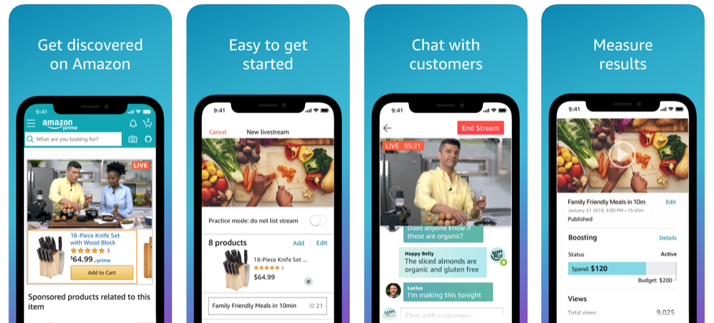 이제 판매자(브랜드 및 개인 판매자)가 자신의 제품을 홍보하는 라이브 스트리밍을 아마존 라이브 앱과 웹에서 무료로 진행할 수 있게 되었어요. 유튜브나 트위치처럼 스마트폰으로 간편히 스트리밍 할 수도 있고, 미리 편집한 영상을 실시간 송출하는 것도 가능하다고 합니다.