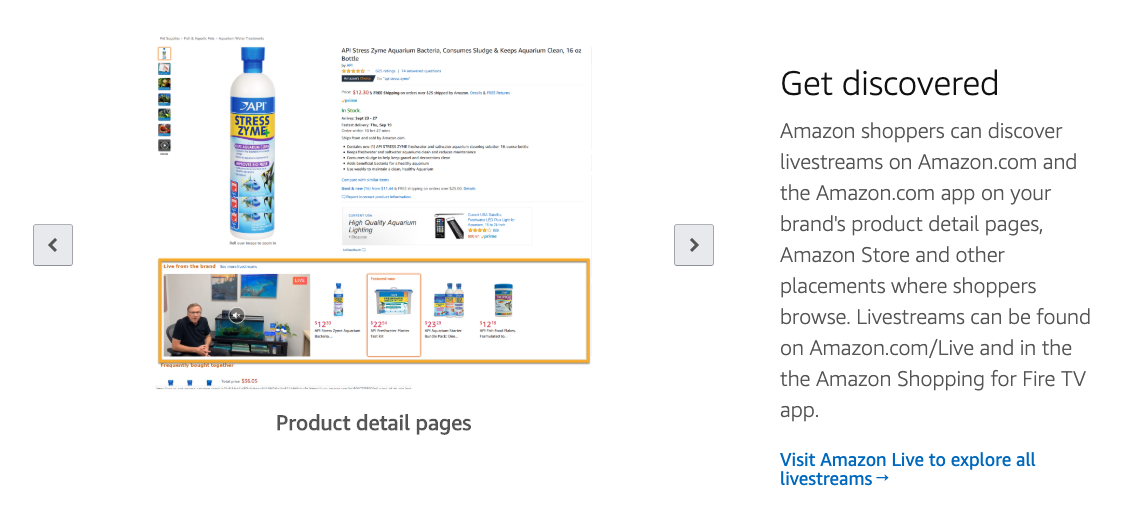 잠재 소비자들과 직접 소통하며 제품을 소개하고 설득할 수 있다는 점 외에도, 아마존의 제품 상세 페이지 등의 여러 영역에 라이브 스트리밍 콘텐츠를 노출시킬 수 있다는 점도 매력적인 부분인 것 같아요.
