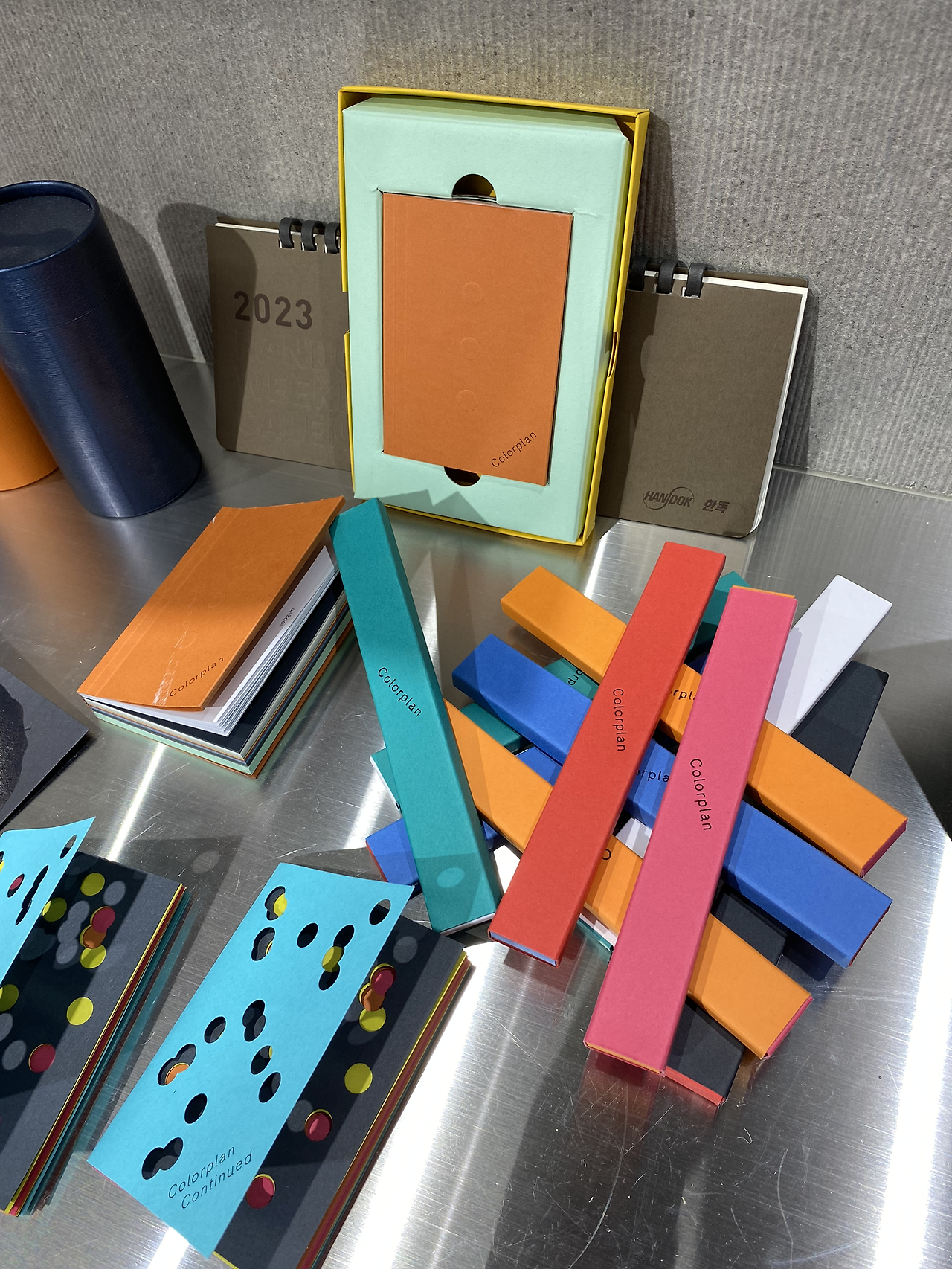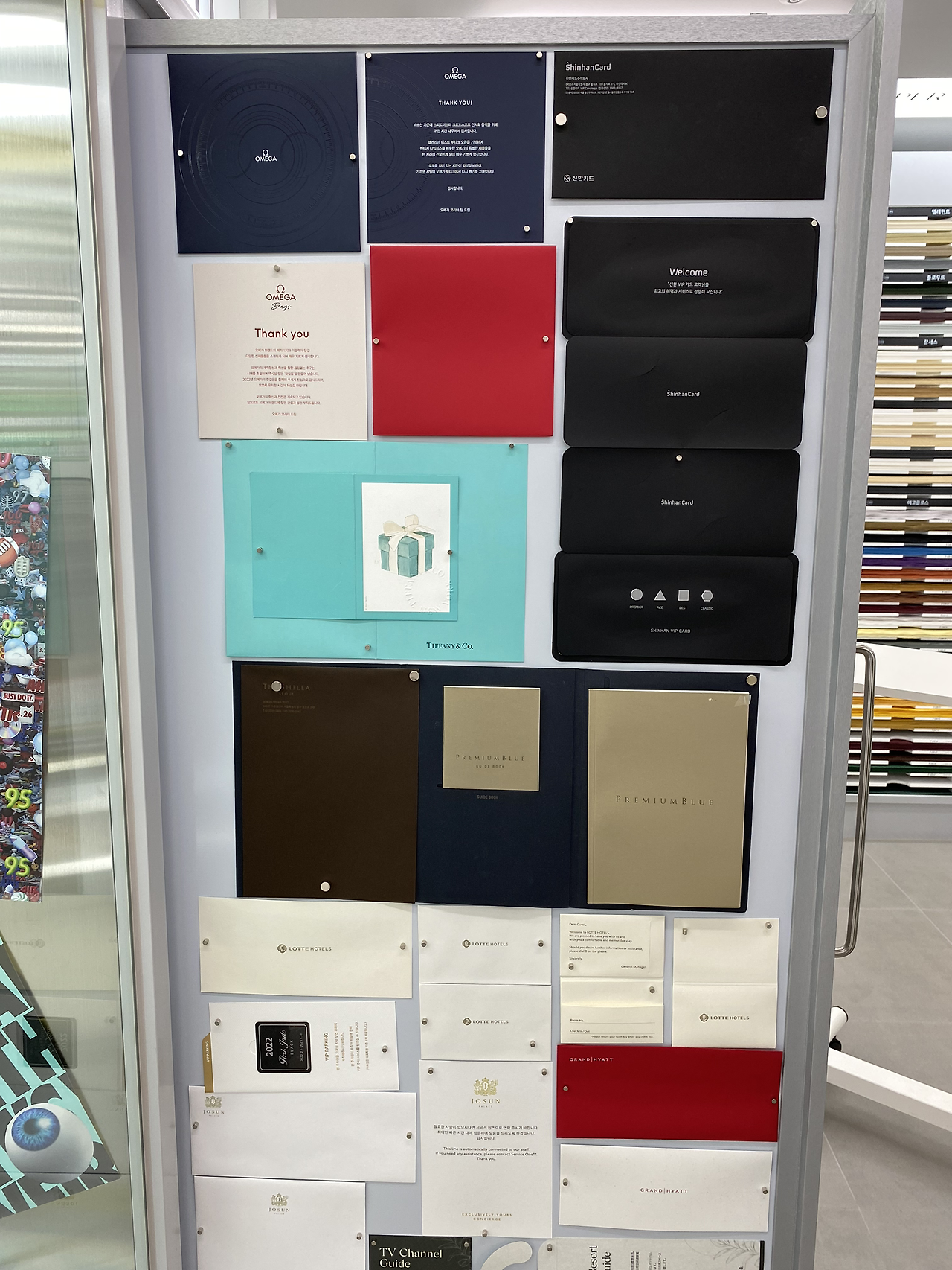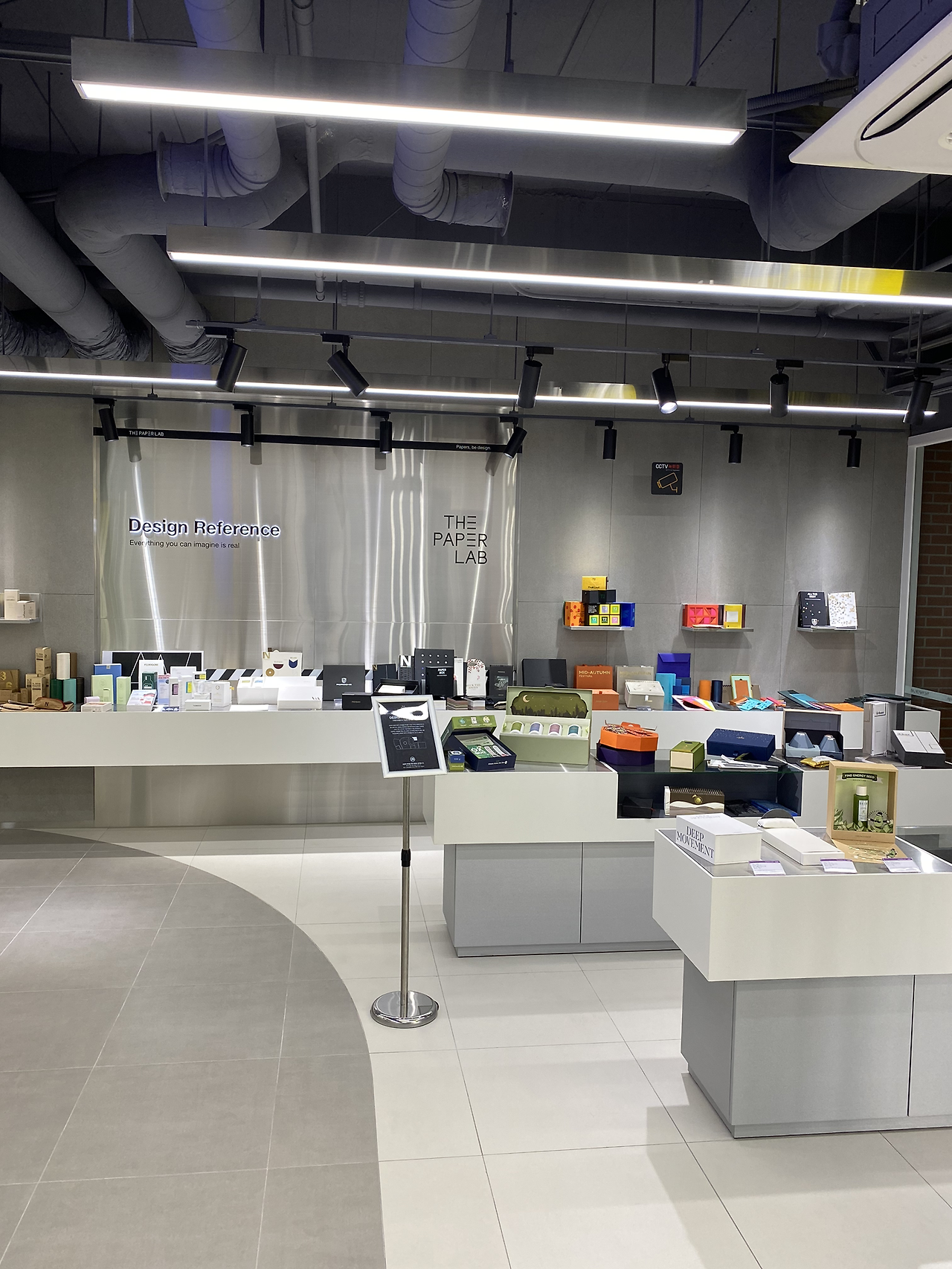 입구에 들어서자마자 제일 먼저 알록달록 수많은 종류/ 색상의 종이 샘플들이 방문자들을 환영하듯 맞이하는데 그 모습이 꾀나 인상적이다. 기껏 해봐야 대형 화방이나 삭막한 충무로의 인쇄소에서 진열된 종이를 고르던 것에 만족해했던 디자이너라면 가히 놀랄만한 디자이너들의 놀이터 같은 곳이다.