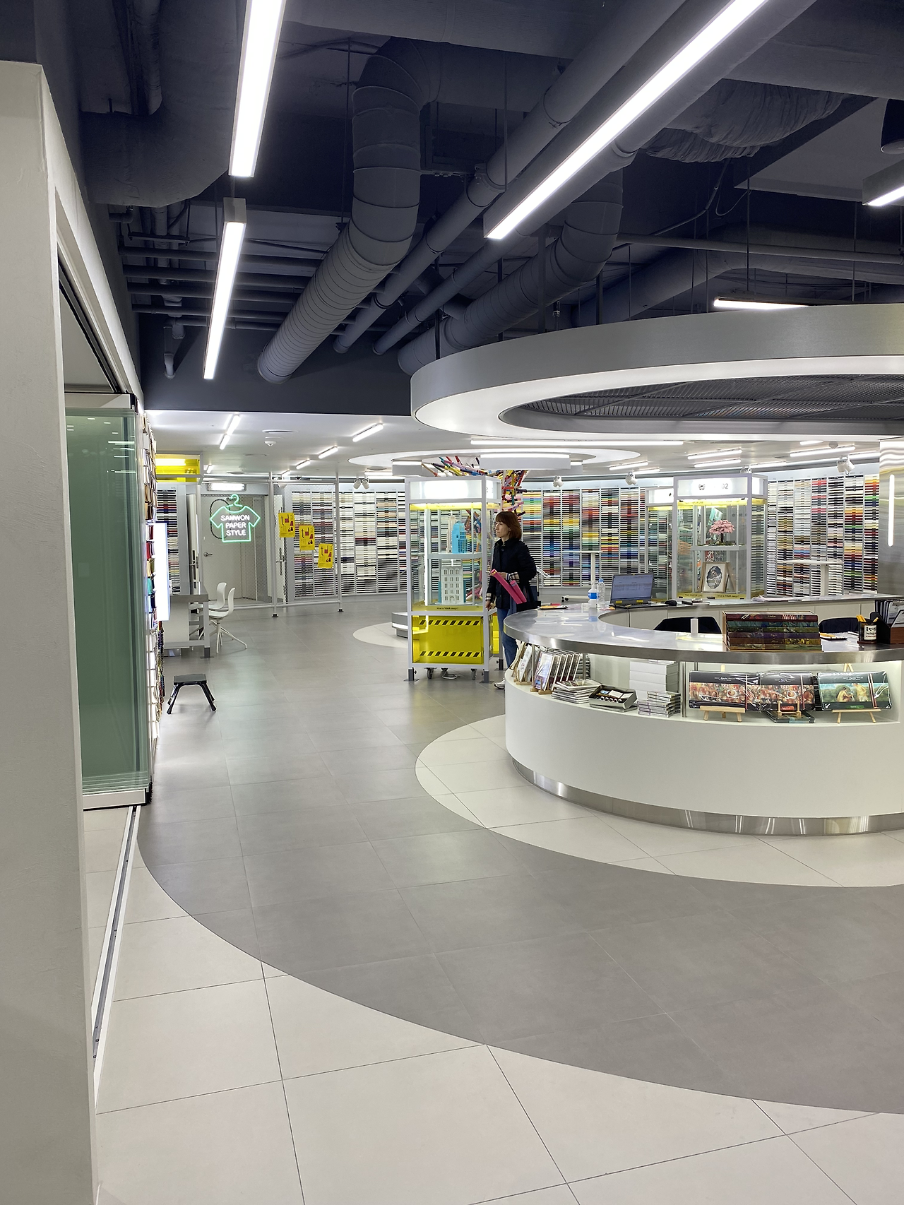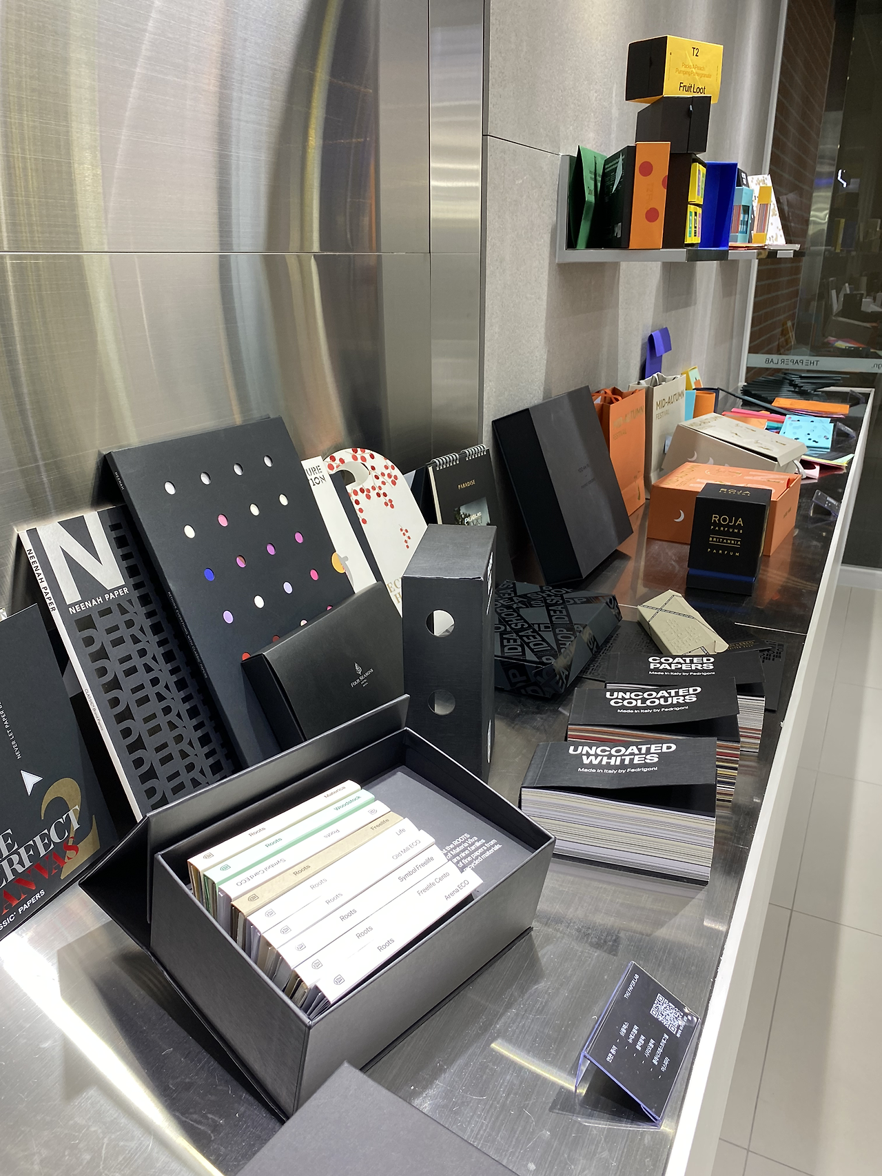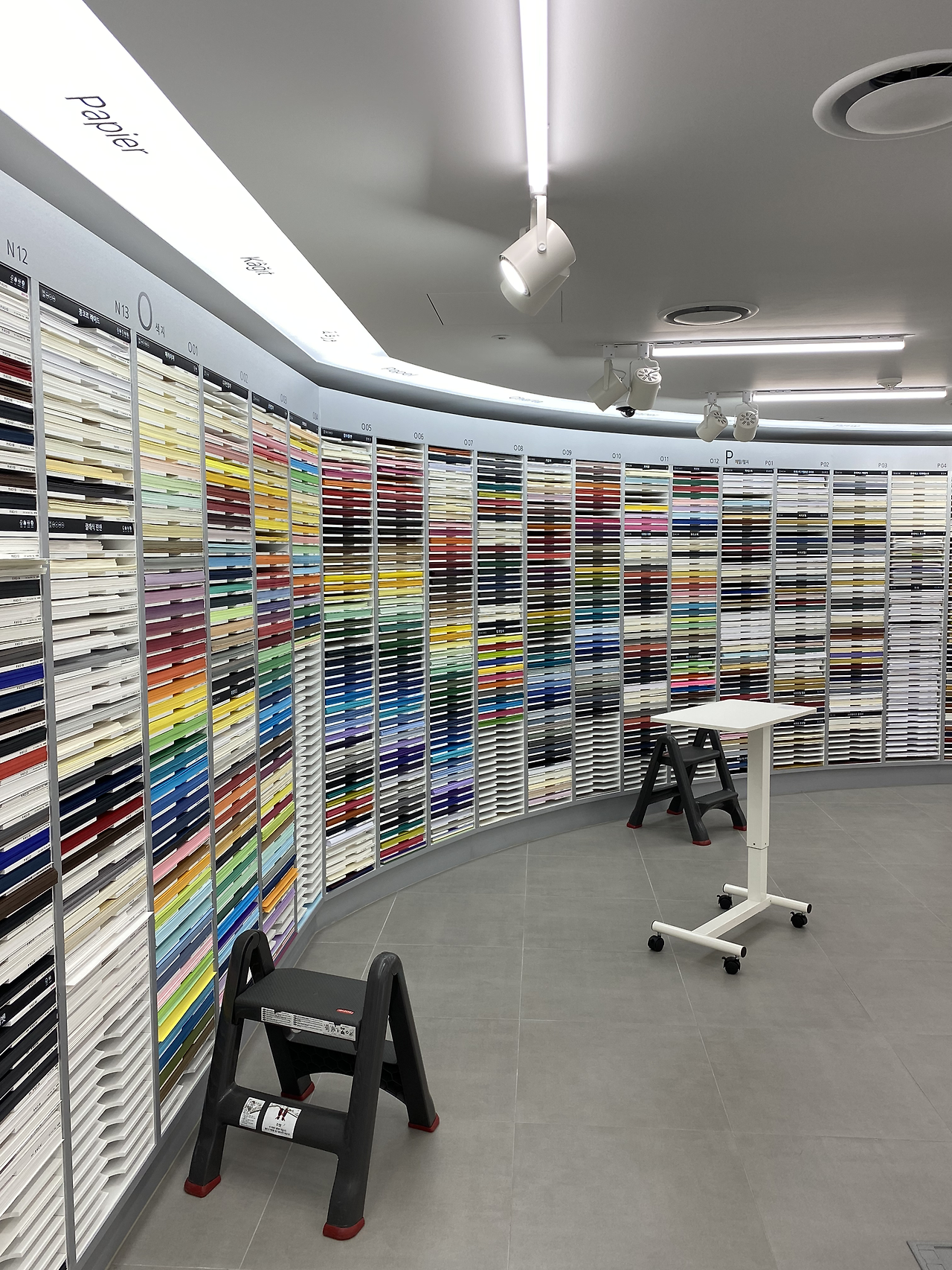 입구에 들어서자마자 제일 먼저 알록달록 수많은 종류/ 색상의 종이 샘플들이 방문자들을 환영하듯 맞이하는데 그 모습이 꾀나 인상적이다. 기껏 해봐야 대형 화방이나 삭막한 충무로의 인쇄소에서 진열된 종이를 고르던 것에 만족해했던 디자이너라면 가히 놀랄만한 디자이너들의 놀이터 같은 곳이다.