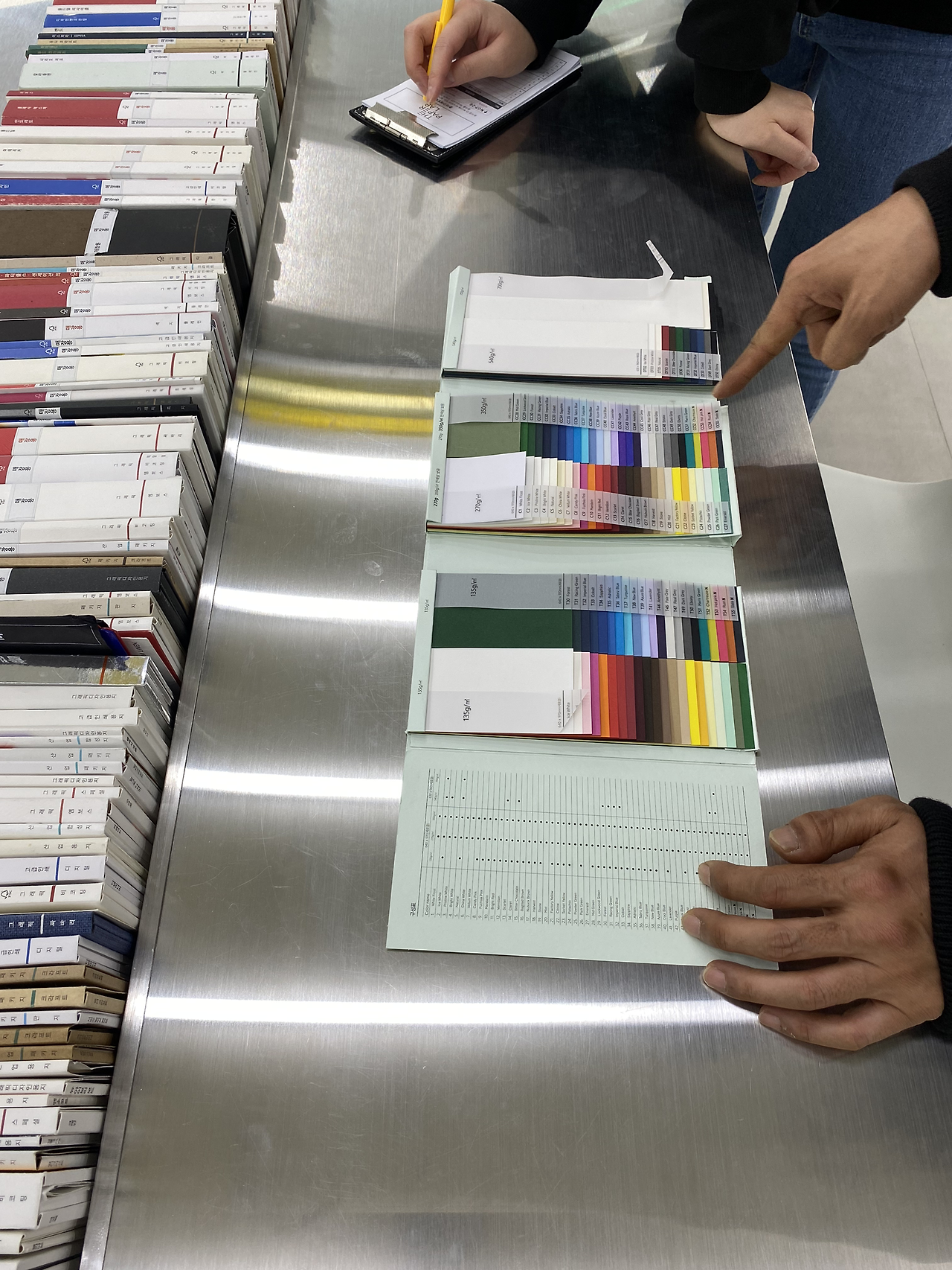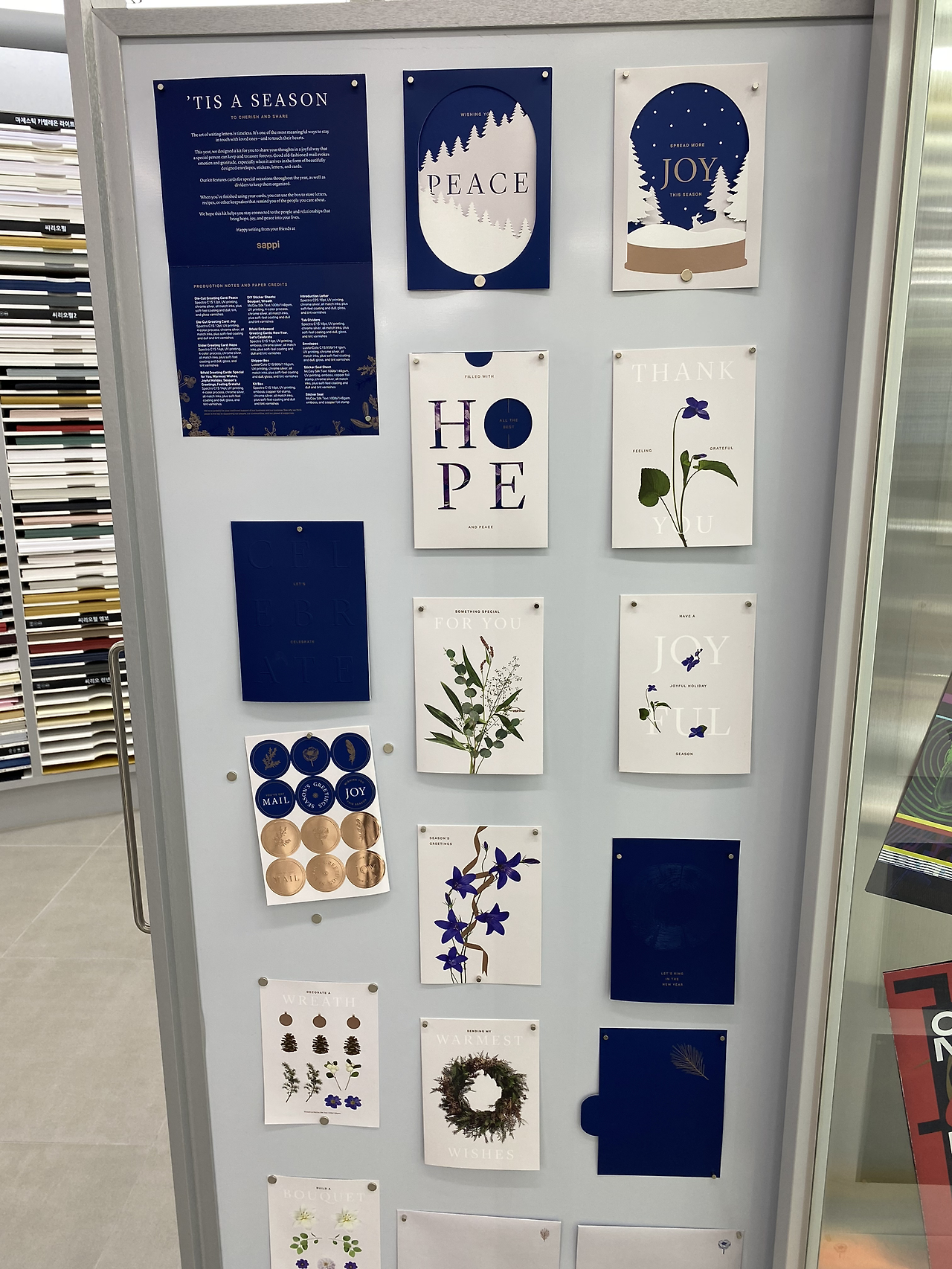 전시된 다양한 샘플들을 보니 잠들어있던 디자인 욕구가 다시금 솟구쳐 오르는 것 같다. 진열된 샘플 말고도 마치 디자인 박물관에 온 것처럼 구석구석 다양한 유형의 전시물들이 눈에 띄는데 삼원특수지의 전문 디자이너들이 주기적으로 직접 큐레이팅을 한다. 때마침 나도 올해 진행하고 있는 이 ‘취향의 정원’ 프로젝트 포스터를 제작 중인데 완성되면 이곳에서 세상에 하나뿐인 나만의 근사한 포스터를 인쇄를 해보리라 다짐해 본다.