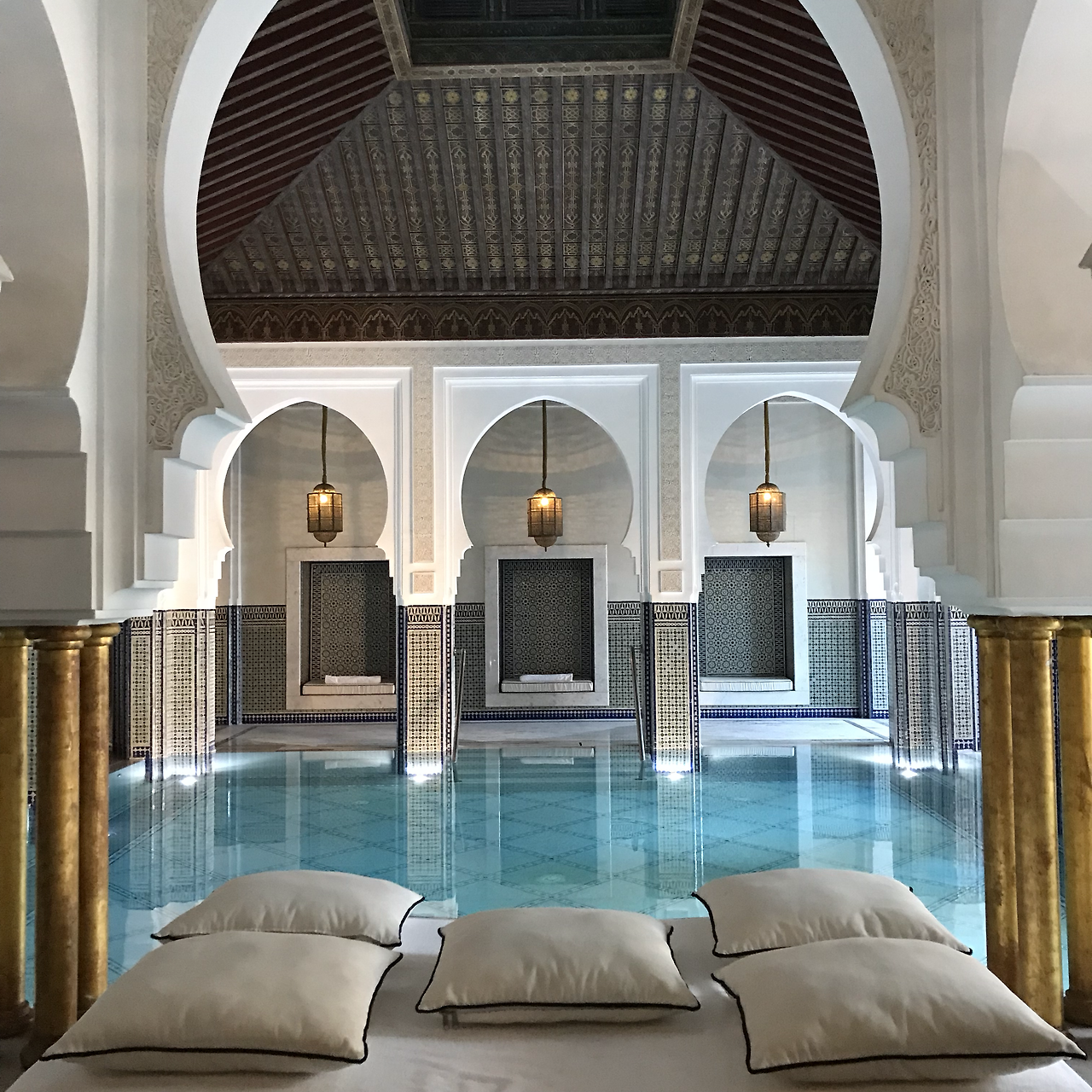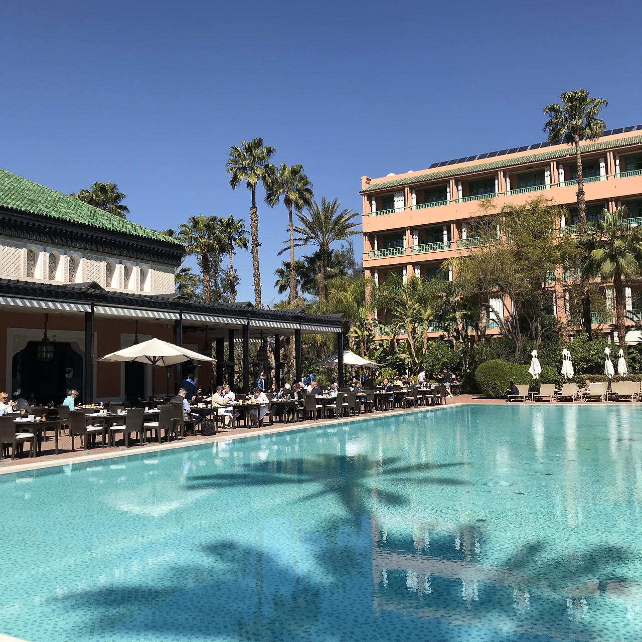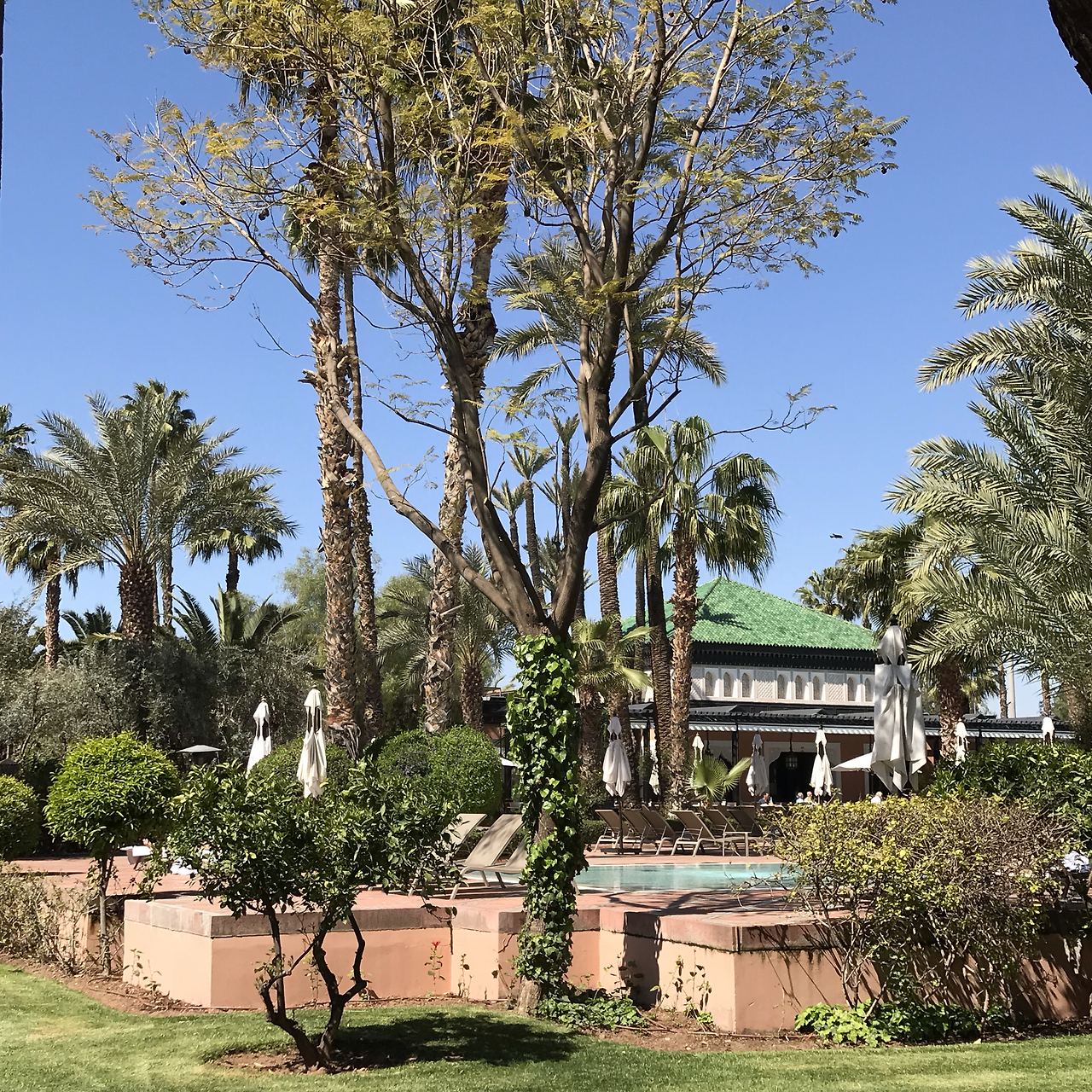 마라케시 최고의 호텔로 손꼽히는 라 마무니아. 영화 ‘섹스 앤 더 시티 2’ 주인공들의 아부다비 여행이 사실은 라 마무니아 호텔에서 촬영되었다는 사실. 윈스턴 처칠과 입생로랑을 비롯한 셀럽들이 너무나도 사랑했던 호텔이었다는 정도로만 알고 간 나와 달리, 어릴 적 부모님과 다녀왔던 남편은 광활한 정원이 너무나도 인상 깊었다며 잔뜩 신이 났다.