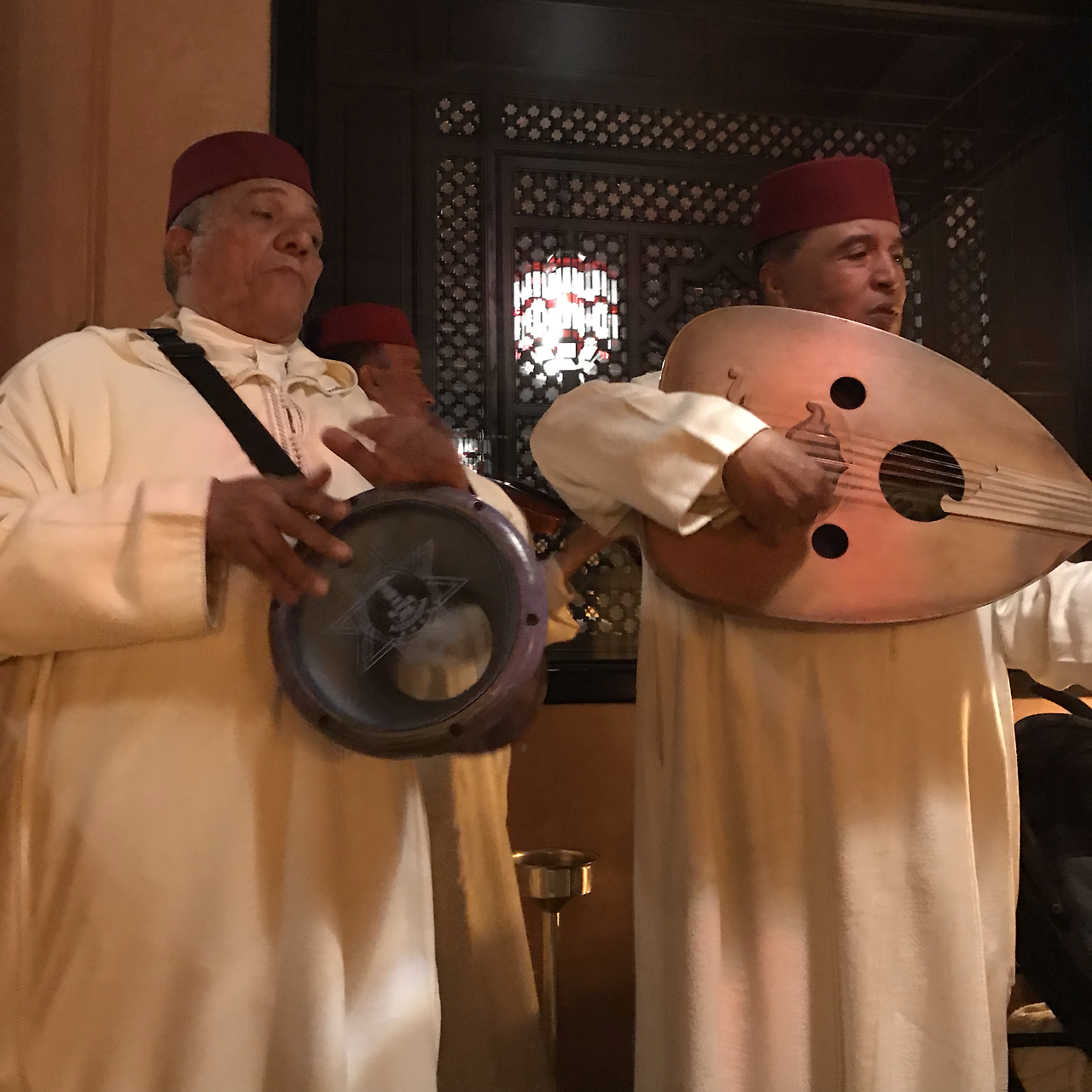 입장하자마자 모로코 전통 음악을 연주하며 반겨주는 악사들과 눈 맞춤하는 동시에 온갖 기대가 차오른다. 내가 그토록 원했던, 이국적이고 이색적인 풍경 속에 실제 한다는 사실에 또 벅차오른다. 첫날이라 들떴으려니 했던 마음은 여행이 끝날 때까지도 훅하고 헉하는 풍경과 순간들이 선사하는 들뜸으로 나를 온전히 사로잡았다.