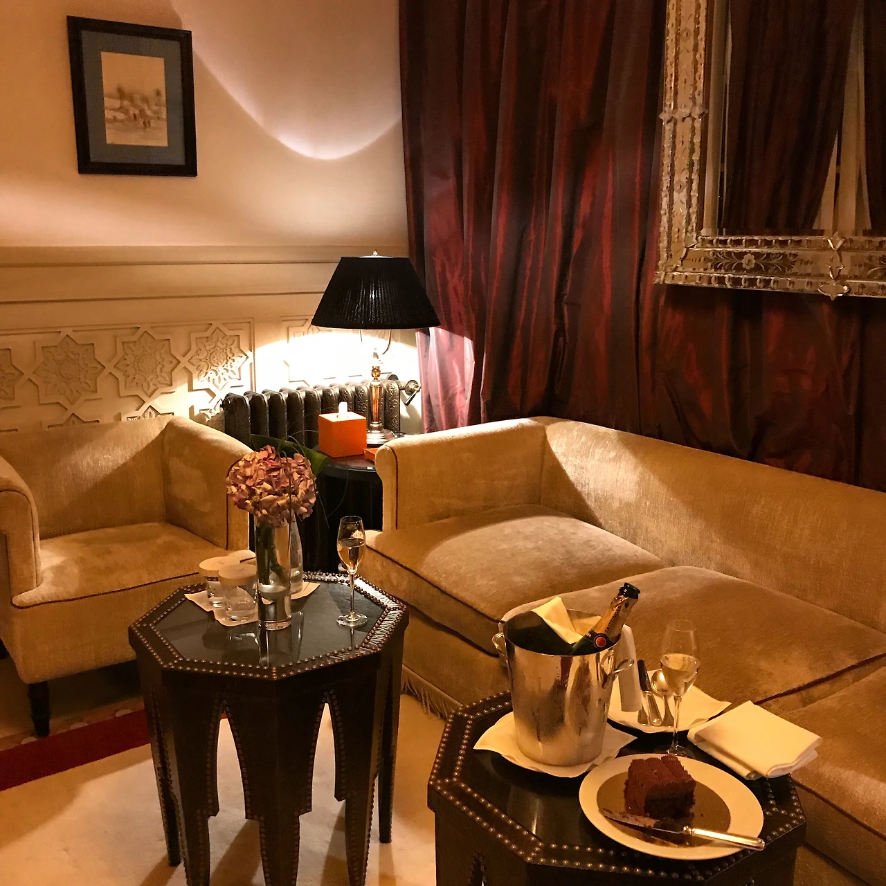 눈 덮인 아틀라스 산과 야자수 및 각종 식물이 가득한 정원이 한눈에 내려다보이는 주니어 스위트룸을 배정받았다.