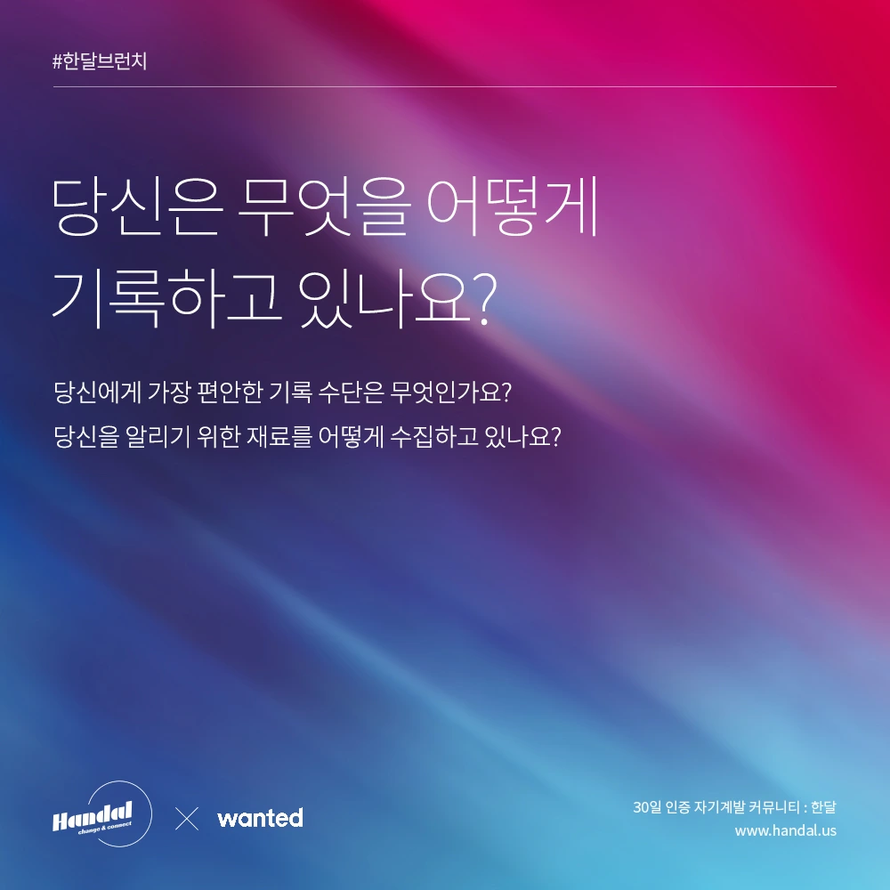 이번 달은 나에 대해 글을 쓰기로 했으니 내가 하는 모든 생각과 행동들이 나를 알리는 재료가 되었다. 그 재료들을 잘 가공하기 위해서 글, 사진, SNS 계정과 같은 수단들을 특히나 이번 달엔 많이 활용한 것 같다. 평소 사진을 잘 찍는 편이 아니었는데, 이번 달만큼은 마음에 드는 것이나 남기고 싶은 게 있으면 그때그때마다 바로 사진을 찍어서 SNS 계정에 공유하거나, 그때 느꼈던 감정이나 생각들을 별도 메모를 해두었다가 이렇게 글을 쓸 때 최대한 활용하였다. 결국, 나라는 자체가 나를 알리기 위한 수단이자, 재료가 된 셈이다.