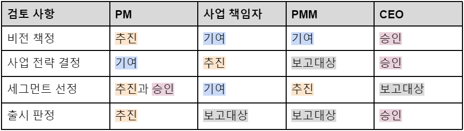 책에서 이야기한 대로 DACI를 활용하면 누구의 승인이 필요한지가 불확실한 상태로 진행돼 의사결정이 늦어지거나, 합의제를 거치는 바람에 범용적인 결론에 이르게 되거나, 이해관계자의 예상치 못한 개입 등을 사전에 방지할 수 있을 것입니다.