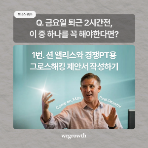 이번 설문을 통해 마케터분들의 고민을 들으며, 마케팅 주니어 시절 '그로스해커 정성영님이 진행하시는 그로스해킹 DS스쿨 교육'과 '패스트캠퍼스 강의'를 열심히 공부했던 시절이 스쳐지나갔습니다. 지난 시절의 노력이 있었기 때문에 현재 위그로스가 클라이언트 분들의 다양한 마케팅 문제를 해결해 드릴 수 있다고 생각합니다.