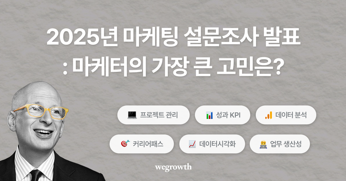 2025년을 맞아 각기 다양한 업종에서 종사하는 마케팅 실무자들의 고민을 확인하기 위해 마케팅 설문조사를 진행했습니다. 이미 예상했던 답변도 있었지만, 생각보다 데이터 분석 툴을 실무에서 활용하지 않으며 대부분 마케팅 실력을 어떻게 키워야할지 모르는 고민들을 얘기해주셨습니다.