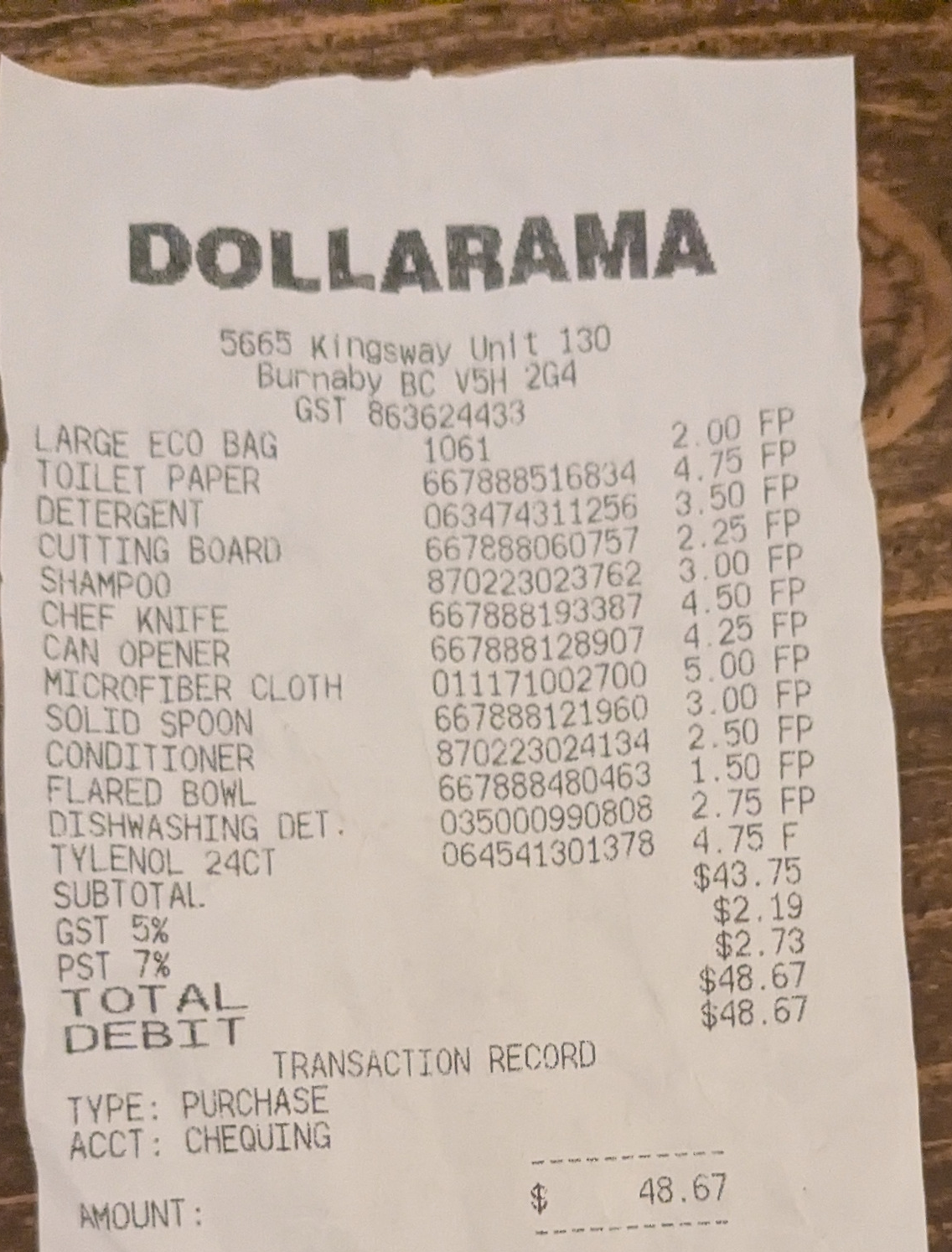 오늘은 캐나다의 다이소, 달라라마에 다녀왔다. 그릇, 칼, 도마, 캔따개, 국자, 빨래바구니, 청소수건, 샴푸, 빨래세제, 주방세제, 휴지까지 한 번에 장만했다. 가게까지는 걸어서 25분. 구글맵만 믿고 길을 따라 쭉 걸었는데 생각보다 어렵지 않았다.