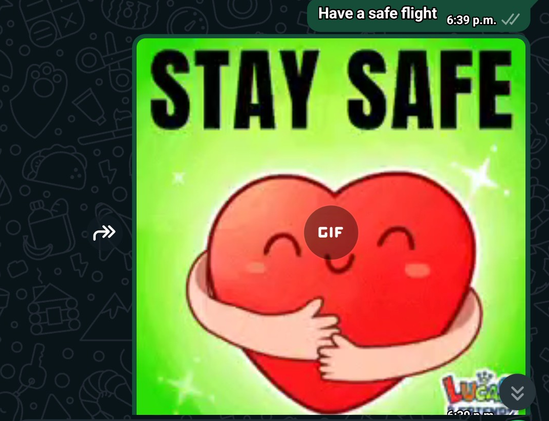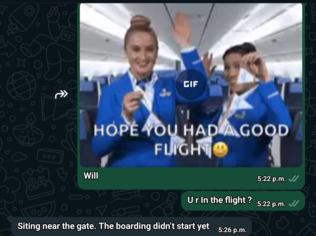 방금 공항에 잘 도착했어.