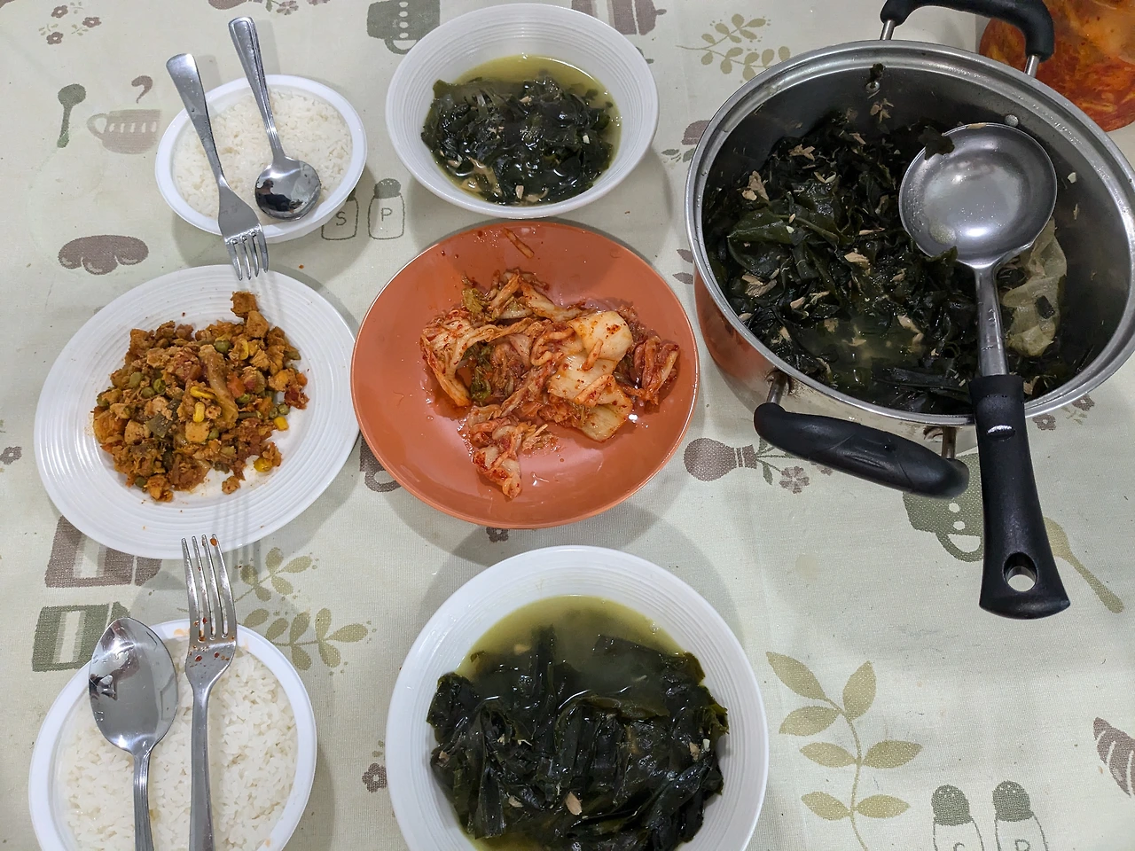 한국남자였으면 미역국 끓여주었을 텐데아무래도 생일에 미역국을 먹는 문화가 아니다 보니까제가 미역국을 직접 끓였어요