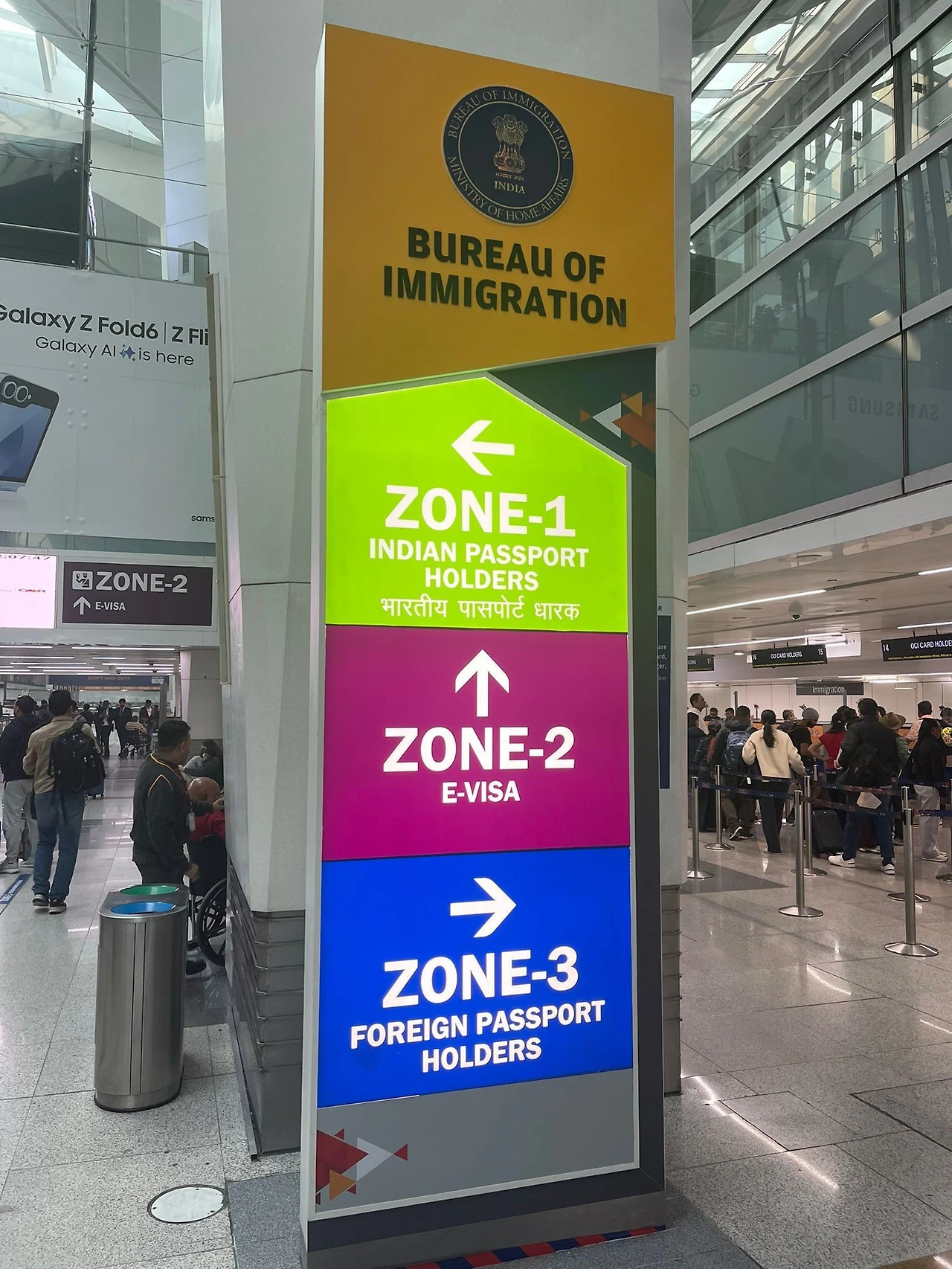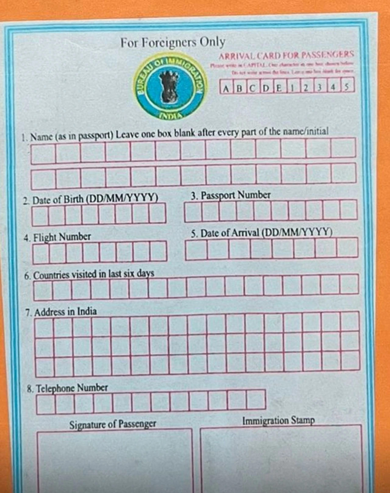 나는 관광 비자로 온 것이기 때문에 외국사람들이 입국심사를 하는 곳에 가서 입국신청서를 작성 후 수사관들이 하는 신분 검사를 했다. 사진촬영을 하고 앙손 손가락 지문을 찍고 몇 가지 간단한 질문에 대답을 잘하면 되었다. 나에게는 인도에서 어디서 거주할 예정인지 얼마나 있을 건지를 물어보았다.